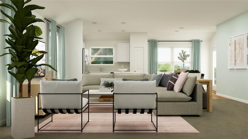 The Avery - Designed with the way families live in mind, this single-level home boasts an open floorplan shared between the living and dining space that works to maximize the footprint of the interior. There are three bedrooms in total - two secondary bedrooms off the foyer and the owner's suite situated privately near the family room - making it ideal for small and growing families. Photos are for illustrative purposes only. Estimated Completion April 2026. The completion date, prices and features may vary and are subject to change. Please verify with Lennar directly.