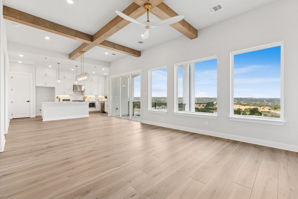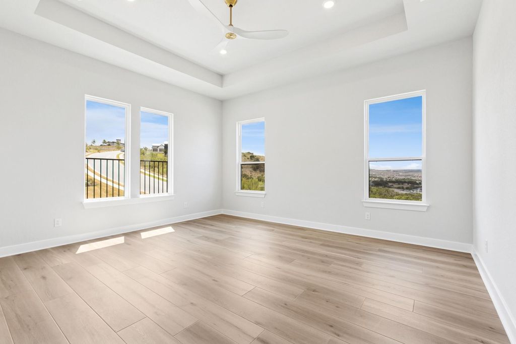 Welcome to The Point, Rough Hollow's exclusive David Weekley Homes lock and leave community, located atop the second highest peak in Rough Hollow. This is the "Tequila Sunrise", a showstopping Bengal plan"”the largest in our collection"”that offers breathtaking canyon and sunset views and timeless sophistication. From the moment you step into the grand foyer, soaring ceilings and 8-foot doors set the tone for what's to come. Designed for effortless entertaining, the open-concept living area features an expansive layout and elegant finishes. The chef's kitchen impresses with GE Profile appliances, double-stacked white custom cabinetry that reaches the ceiling, and a large picture window above the sink. Creamy tones and subtle accents create a serene, upscale atmosphere, while chic gold hardware and lighting provide striking contrast. The family room, with wall-to-wall windows and sliding glass doors, invites you to unwind while taking in tranquil outdoor vistas. Downstairs, you'll find spacious secondary bedrooms, a stylish shared bathroom with dual vanities, and a thoughtfully designed walk-in utility room with ample counter space. Located in a premier Lock and Leave community, this home perfectly balances luxury and low-maintenance living. Don't miss your chance to live "The Rough Life." Schedule your private tour with a Sales Consultant today"”before this dream becomes someone else's reality. Our EnergySaverâ„¢ Homes offer peace of mind knowing your new home in Lakeway is minimizing your environmental footprint while saving energy. Square Footage is an estimate only; actual construction may vary.