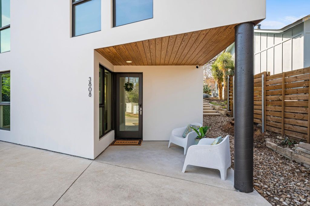 Located in the heart of the highly coveted Ridgelea neighborhood, this stunning 2017 Scandinavian-inspired single-family home with attached income-producing guest flat blends timeless character with thoughtful modern updates in one of Central Austin's most desirable pocket neighborhoods. The main house spans 3,085 sq ft with 3 bedrooms, 3 full bathrooms, three distinct living areas, a dedicated home office/flex space, main-level laundry with ample storage, an upstairs laundry closet, and a basement"”a true rarity in Central Austin real estate. The attached guest flat offers a private entrance on Jefferson Street with off-street parking. At 881 sq ft, it includes 1 bedroom, an additional office/guest room, a light-filled kitchen, two patio areas, and a large walk-in closet with in-unit washer/dryer. Income potential: $2,000+/month long-term or $17K-$20K annually as a short-term rental. Seller may convey fully furnished. Extensively designed by Webber + Studio Architects on a rare 0.23-acre triangular lot with room to add a pool. Landscape architect plans by Garden Design Studio available. Flooded with natural light via oversized windows and sliding glass doors that seamlessly connect indoor and outdoor living. Clean lines, natural wood tones, and custom tilework create a warm, design-forward aesthetic. Zoned to Bryker Woods Elementary, O. Henry Middle School, and Austin High School. Minutes away from Central Market, medical facilities, and acclaimed dining. Steps away from the Shoal Creek Hike and Bike Trail to downtown. Bordered by the Shoal Creek Greenbelt with trails, open fields, and a new trail connection to The Grove pocket park. Amazing neighborhood community known for Easter eggs hunts, Fourth of July parades, Halloween parties, movies in the park and more. Google Fiber available. A rare opportunity to own a turnkey, move-in ready home with flexible living space, rental income potential, and room to expand"”in one of Austin's most desirable zip codes.