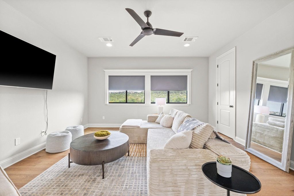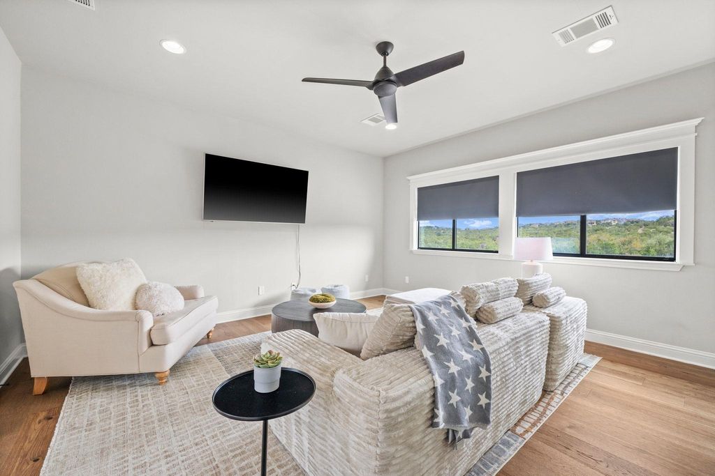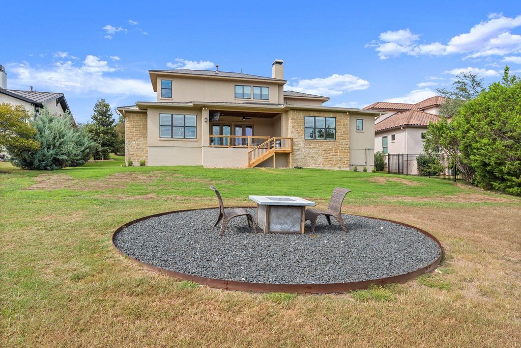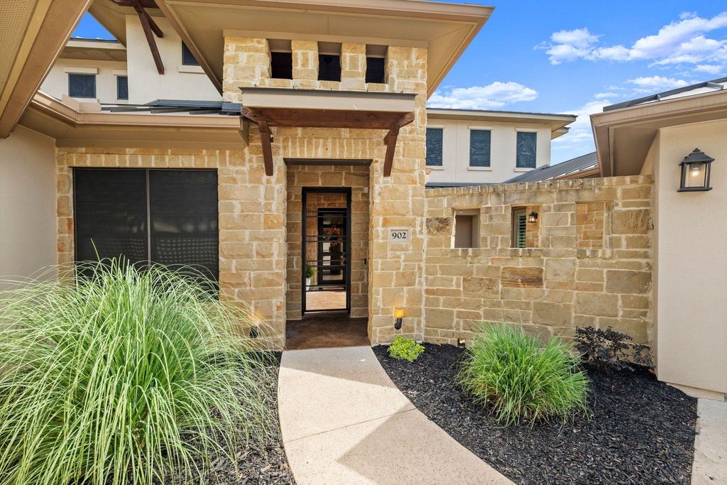 Discover hill country luxury at its finest at 902 Crestone Stream. This stunning home offers a seamless blend of elegance and comfort, starting with a charming front courtyard and a serene, covered patio in the back. Here, you can unwind with picturesque views of the greenbelt and trails just beyond your property line. Step inside to an open floor plan that features a luxurious primary suite and a convenient guest bedroom downstairs, each with its own full en-suite bath. The primary bedroom is enhanced by a striking accent wall that adds warmth and dimension to the retreat. The home also includes a versatile flex room and a dedicated office area. Culinary enthusiasts will be delighted by the gourmet kitchen, which boasts Thermador appliances, a double oven, a 36-inch cooktop with a griddle, luxurious stone counters, an updated backsplash, and a massive pantry. The open concept design flows seamlessly from the kitchen into the spacious family room, highlighted by a beautiful stone fireplace with a gorgeous wood mantle and a stylish accent wall - perfect for both everyday living and entertaining. Throughout the home, you'll find plantation shutters, wood plank tile floors, 8-foot solid core doors, and a central vacuum system for added convenience. The epoxy-coated garage floor offers durability and style, while upstairs, a spacious game room or potential theater room provides a perfect escape. Finally, step out onto the covered patio to relax and soak in those peaceful greenbelt views. Ideally located in top rated Lake Travis ISD, and just minutes from shopping, wonderful restaurants, and Lake Travis recreation, this home delivers the best of Hill Country living with everyday conveniences close at hand.