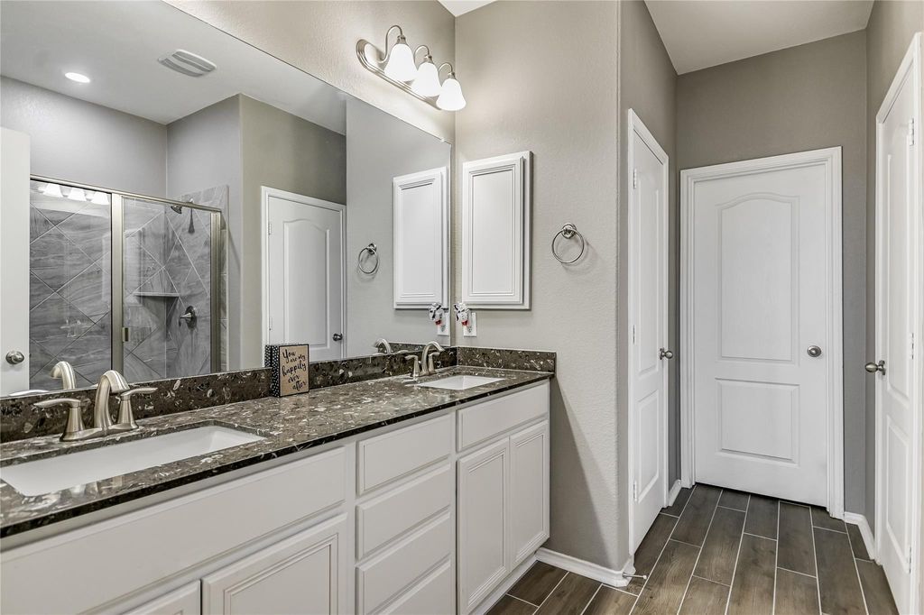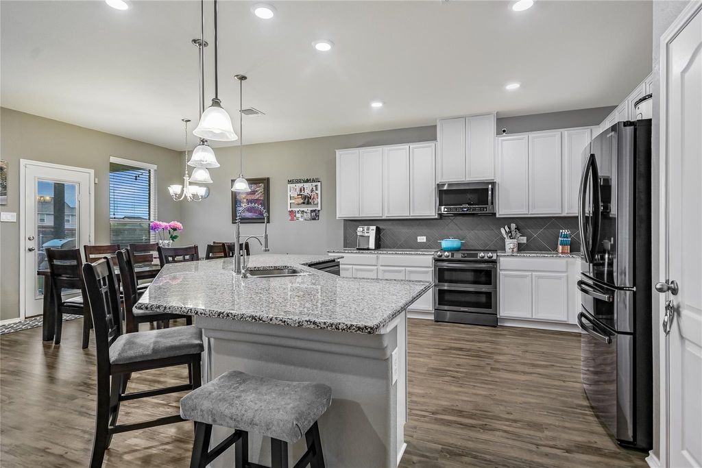 Welcome to this spacious and well-maintained two-story home in Presidential Meadows with many updates. Offering 4 bedrooms and 2.5 baths, this 2,505 sq ft residence features an open floor plan with multiple living areas, a granite kitchen with an island, stainless steel appliances, and an eat-in dining space ideal for everyday living and entertaining. The primary bedroom is conveniently located on the main level, while three additional bedrooms and a secondary living area are upstairs, providing plenty of room for everyone. The home sits on a beautifully landscaped interior lot with mature trees, a private fenced backyard, and a covered patio perfect for outdoor relaxation. Additional highlights include a 2-car garage, wood fencing, tile/laminate/carpet flooring, and energy-efficient electric systems. Located within Manor ISD and just moments from community amenities, shopping, and major roadways, this property combines comfort, convenience, and community living with access to the neighborhood pool. Built in 2016, this home is move-in ready and a fantastic opportunity in a growing area.