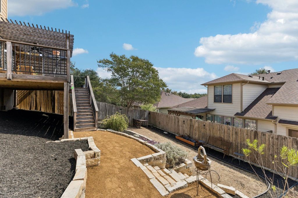 If you lived here...your hill country mornings would start with the sound of birds and the smell of fresh coffee from the cafe across the street. You could walk over to The Shore for seafood and sunsets, grab your laptop for a quick stop at the neighborhood flex-work space, spend the afternoon lounging by the pool or playing fetch at the dog park. Life in the gated Covered Bridge community is all about connection and ease - a true lock-and-leave lifestyle surrounded by greenery yet minutes from Southwest Austin's best restaurants, trails and shopping. This home is ideal for anyone craving low-maintenance living without sacrificing style or outdoor space. Inside this end-unit townhome, natural light fills every corner. The open living and dining space flows effortlessly into the kitchen and out to a beautifully landscaped private backyard - a standout feature that feels more like a small sanctuary than a yard. The primary bedroom is conveniently located on the main level, offering a calm retreat with its own ensuite bath and walk-in closet. Upstairs, two additional bedrooms and a full bath provide the perfect setup for family, guests or a work-from-home office - all overlooking an airy open-to-below landing. Enjoy full access to neighborhood amenities - the resort-style pool, dog park, and community green spaces - for just $750 a year through the Covered Bridge POA. This move-in-ready home delivers the best of both worlds: a peaceful retreat wrapped in convenience, community and Austin energy.