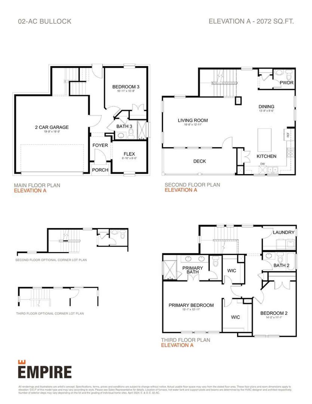 MLS# 2303876 - Built by Empire Homes - Dec 2025 completion! ~ The Bullock is a unique 3-bedroom, 3.5-bathroom home spanning 2,050 sq.ft. This 3-story home includes a luxe kitchen and dining area, with direct access to the spacious living room. This home is the perfect backdrop to make memories with a bedroom and full bath on the main level, in addition to a transformative flex space. If a dedicated outdoor space is a must-have in your future home, you'll love this floor plan which has a second-floor deck to enjoy delicious meals al fresco. The third floor is where two of three bedrooms reside, including the primary suite which boasts double sinks and an impressive walk-in shower with a bench. A 2-car garage is located at the front of the house with ample room to house vehicles and meet all your storage needs.