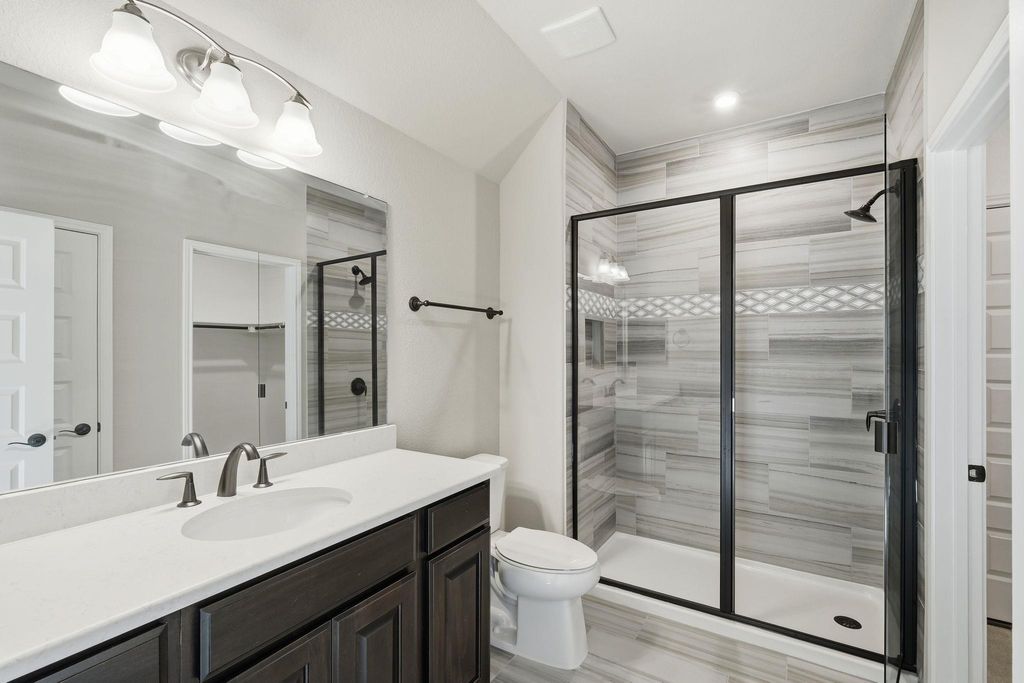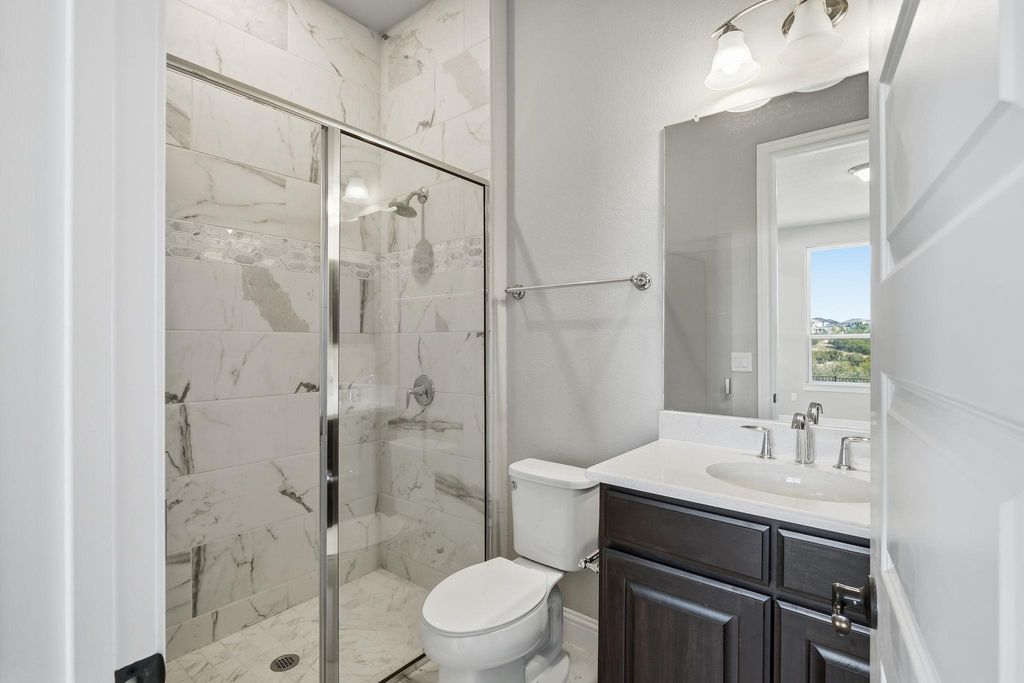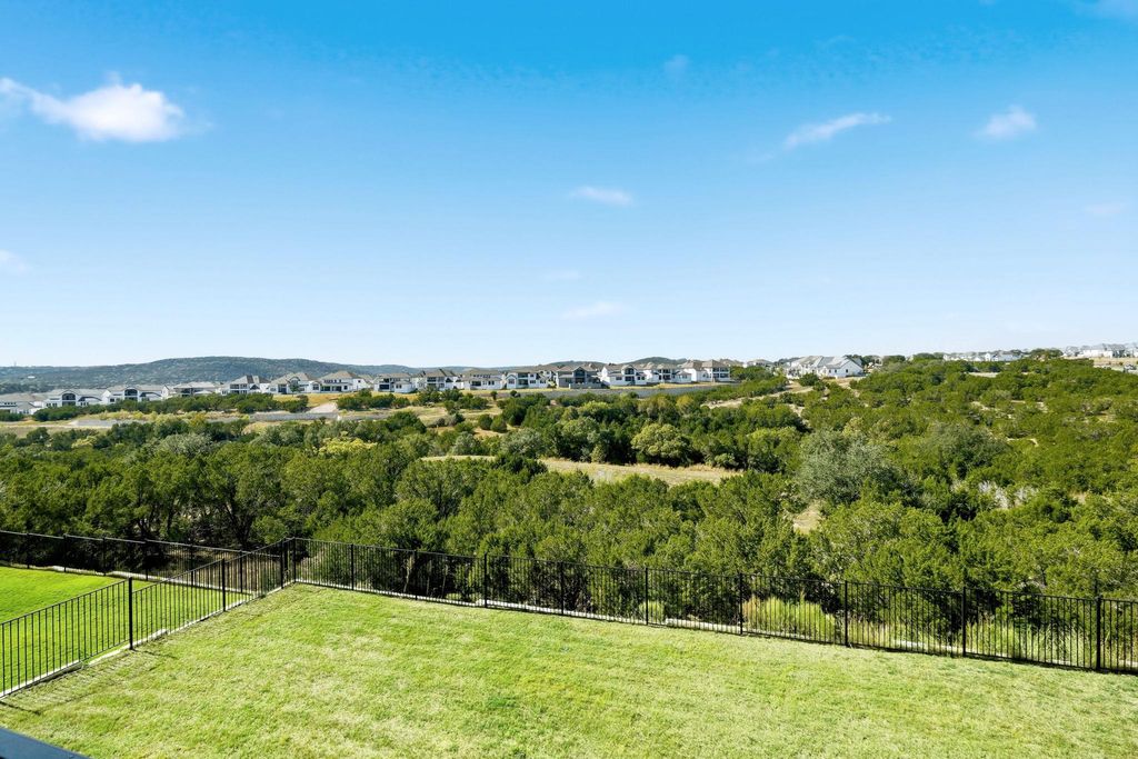 Stunning, never lived in Toll Brothers residence in the coveted Travisso community featuring 5 beds, 5.5 baths and approximately 5,773 sq ft of immaculate living space. Designed to impress from the moment you enter, the home welcomes you with an elegant double winding staircase, soaring ceilings, and expansive open concept entertaining areas filled with natural light. The chef ready kitchen offers abundant workspace, premium appliances, and seamless flow into the living and dining spaces, making hosting effortless. The thoughtfully designed floorplan includes generous primary suite along with flexible home office, media, and flex room options to tailor to your lifestyle. Enjoy true indoor outdoor living with covered patios and room to create your ideal backyard space. Meticulously upgraded with in builder selections and premium finishes throughout, this home delivers a refined, move-in-ready experience. Located in Travisso, an award-winning master-planned community known for its stunning Hill Country surroundings and exceptional amenities including a 9-acre amenity center, resort-style pool, fitness center, tennis and pickleball courts, playgrounds, trails, and year round lifestyle programming. Residents also benefit from proximity to top rated Leander ISD schools, shopping and dining at The Shops at Crystal Falls, entertainment at The Oasis and Lakeline, and quick access to Lake Travis recreation. Impeccably maintained and beautifully appointed, this home offers luxury, comfort, and an elevated way of living in one of Leander's most desirable neighborhoods.