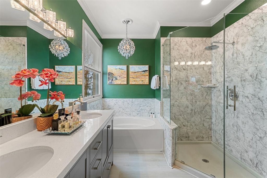 INTERIOR | Bookcases, Breakfast Bar, Built-in Features, Ceiling Fan(s), Chandelier, Crown Molding, Double Vanity, Entrance Foyer, High Ceilings, High Speed Internet, Master Downstairs, Open Floorplan, Pantry, Recessed Lighting, Smart Thermostat, Walk-In Closet(s), Wired for Data |