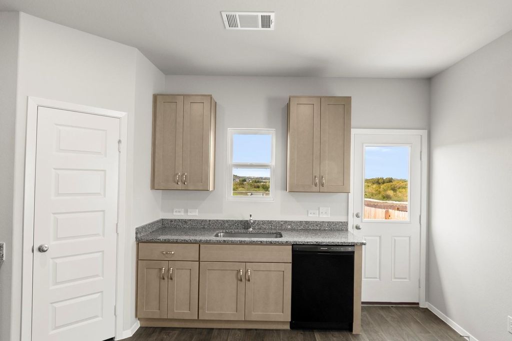MLS# 2348073 - Built by Brohn Homes - Ready Now! ~ Located at 11608 Murano Drive in the beautiful Cloverleaf community, this one-story new home's layout blends practicality and warmth with modern finishes like wood-look vinyl flooring in the main living areas, light brown cabinets with nickel hardware, and natural light fills every corner of the home to create a bright, airy feel. The kitchen features 42-inch upper cabinets, 3 cm granite countertops, a corner pantry, and opens up into the living room space, making working in the kitchen efficient and easy. The primary suite offers the comfort of a walk-in closet, semi-private water closet, and walk-in shower.
