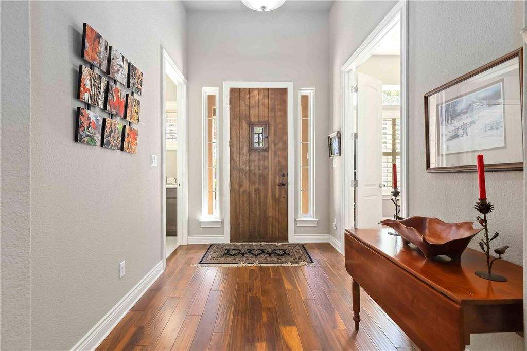 A breathtaking premium villa situated on a private lot in the highly sought-after 55+ community of Tuscan Village. Offering over 2,530 square feet of thoughtfully designed living space, this home features three spacious bedrooms, two full bathrooms, and one half bath, along with a dedicated office, living room, and formal dining room centered around a stunning stone fireplace. The gourmet kitchen is a true highlight, complete with stainless steel appliances, granite countertops, and a large island"”perfect for entertaining. Elegant hardwood flooring runs throughout the main living areas, complemented by custom window treatments, while plush carpeting in all bedrooms and closets adds comfort and warmth.The expansive primary suite offers a relaxing retreat with an oversized layout, cozy sitting area, and serene views of the greenbelt. Additional features include an upgraded single driveway, a two-car attached garage with storage shelving, and a spacious laundry room equipped with a sink conveniently located off the primary suite. Step outside to your private covered patio and wrought iron fenced backyard, a peaceful and serene retreat surrounded by beautiful mature trees where you can unwind and enjoy the natural beauty of the hill country. As a resident of Tuscan Village you will enjoy world class resort style amenities including an indoor and outdoor pool, hot tub, fitness center, yoga and aerobics room, game room, pickleball, and a vibrant clubhouse where neighbors become lifelong friends. All of this just steps from the Lakeway Public Library and minutes from the incredible shopping and dining that the Lakeway area has to offer. This is more than a home, it is a lifestyle you have earned. Come see it for yourself! This is truly a must-see home that combines luxury, comfort, and convenience. Welcome Home!