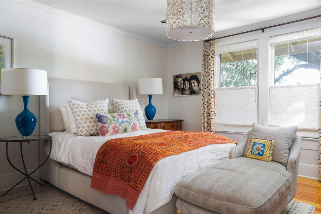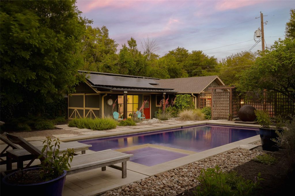Located in the highly sought-after Old Enfield neighborhood just minutes from downtown, this beautifully restored 1922 home blends historic charm with thoughtfully curated modern updates. Set on a 0.3-acre lot, the property features striking, low-maintenance drought-tolerant landscaping, a serene backyard retreat with an oversized pool, hot tub, detached gym, and a shaded stone patio beneath a majestic Heritage Oak. A private guest cottage, accessible via alley, offers versatile space for visitors, a home office, or rental income. Previously owned by four generations of the R. L. White family, (the supervising architect of the UT tower and many other buildings on and around the UT Campus), this home is historically designated. With its blend of classic architecture, and zen-like setting, this is a rare opportunity to own a piece of Austin's history in a prime central location.