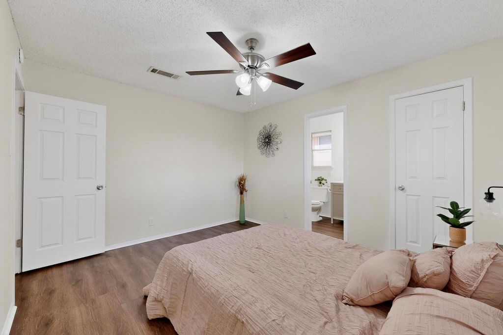 Monster live oak trees tower over this charming single story ranch style home! Many upgrades and updates made over the last couple of years. Inside and out this home is in good condition and adorable. Outside now has, Hardi siding, Paint is white with black trim. The roof shingles were replaced June of 2025, upgraded shingles and added ridge vent for energy efficiency. Central air and heat replaced August 2023. Both Bathrooms were renovated and upgraded in 2022. Beautiful white wave Italian tile and quartz counter tops. Electrical upgrades done in 2018. New gas range installed 11/2023. New Quartz kitchen counter tops and complete paint job and repairs done in October of 2024 and finally new luxury vinyl plank flooring in entire home installed 10/2024. We saw the small crack in back and wanted to make sure the home was level and fine so you will see the Engineers certification in documents. (Gutters were recommended as usual) Energy Audit to be done soon, New survey should be in next week.