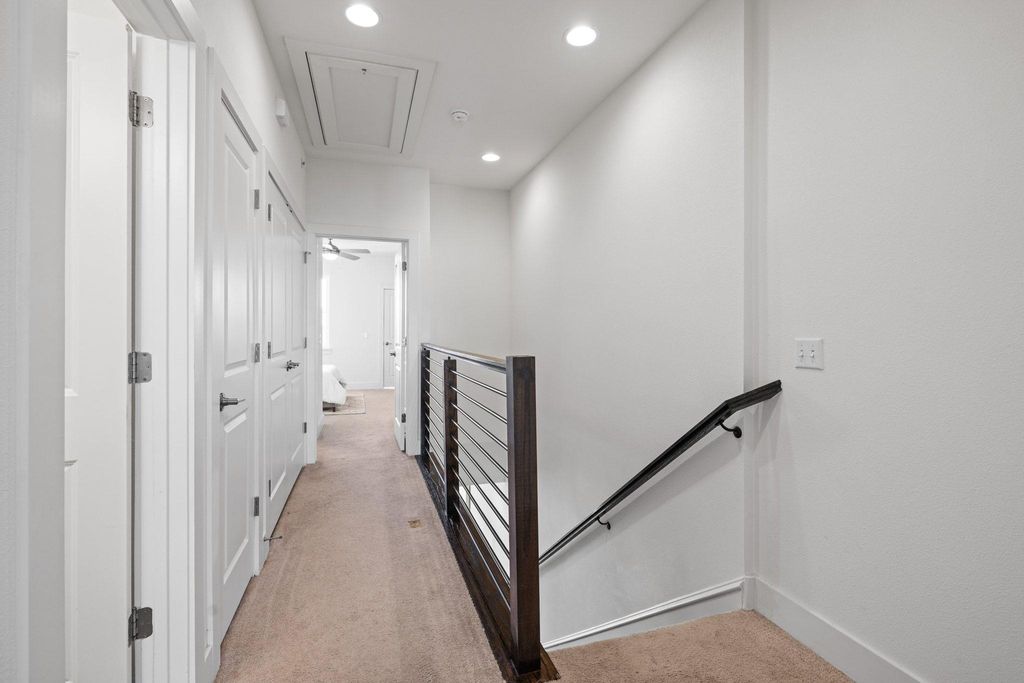 Welcome to Mueller living at its best, a bold, modern townhome style condo offering 2 bedrooms, 2.5 baths, and 1,342 square feet of light filled living space with an alley accessed garage. Built in 2022, this residence feels crisp, current, and thoughtfully designed. Set back from the road, the home enjoys a calm, welcoming approach with a sitting area just outside the front door. A defined entryway creates a true sense of arrival before opening into a beautifully proportioned main living level. The inviting living room flows seamlessly into the dining area and kitchen, complemented by a conveniently located half bath. High ceilings and oversized windows fill the home with natural light throughout the day, while the open concept layout feels bright, expansive, and ideal for everyday living and entertaining. The floor plan is smart, intuitive, and well suited to modern lifestyles.The kitchen anchors the space with quartz countertops, full height cabinetry for generous storage, and a sleek subway tile backsplash that adds architectural edge. Refrigerator, washer, and dryer convey, making the home move in ready and turnkey. The oversized one car garage offers flexibility for storage, hobbies, or gear, with a rear driveway providing additional parking beyond street parking on Simond. The HOA has recently installed new metal roofs, adding long term value and peace of mind. Located in the northeast section of Mueller, this home offers quick access to shopping, dining, and major highways while remaining quietly connected to the neighborhood. Just a few doors from the new Marshall Middle School and near the Mueller trails and Tannehill Branch Greenbelt. With Aldrich Street, the Market District, Alamo Drafthouse, the Thinkery, hospitals, and more than 10 parks connected by miles of greenways, this is modern Austin living done right. Stylish, efficient, and perfectly positioned, this is the Mueller opportunity buyers wait for. Schedule your private viewing today.