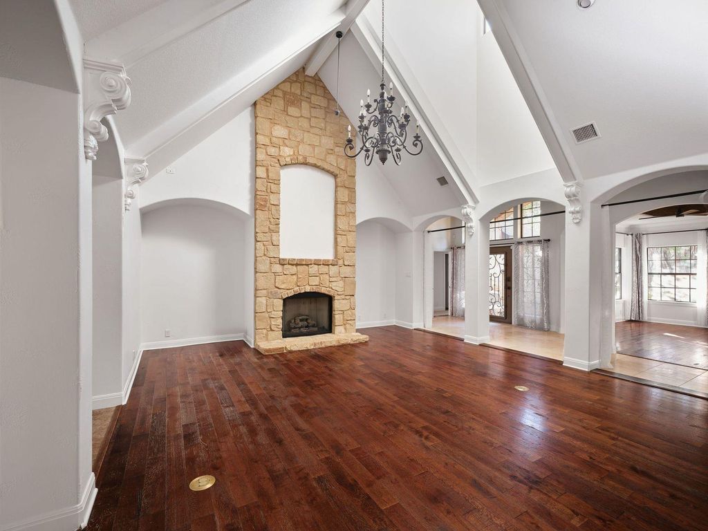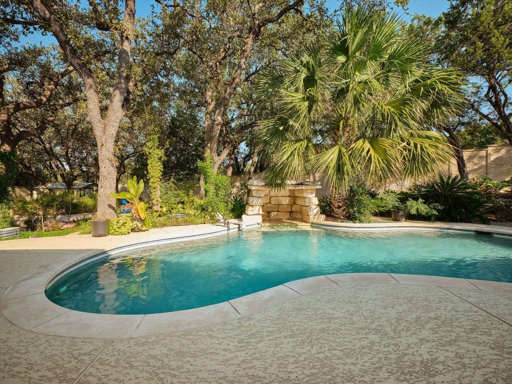 Welcome to The Grotto, a rare single-story retreat on Mount Bonnell that combines timeless architecture, thoughtful design, and one of Austin's most captivating backyards. This 3,006-square-foot home delivers the perfect balance of privacy, wellness, and convenience"”just minutes from downtown Austin, the Arboretum, and the Domain. Inside, vaulted ceilings, skylights, and a stone fireplace fill the living spaces with volume and natural light. The chef's kitchen features dual ovens, two dishwashers, a prep sink, walk-in pantry, and a large island designed for entertaining or everyday ease. Multiple living areas, including a dedicated office, create flexibility for modern lifestyles. The private primary suite opens directly to the backyard and offers a spa-like bath with dual vanities, soaking tub, and separate shower"”plus a rare in-home sauna for daily wellness. Secondary bedrooms are positioned on the opposite wing for comfort and privacy. Outdoors, the property transforms into a true sanctuary. A heated pool with cascading waterfall and grotto sets the scene, complemented by a screened-in porch, outdoor fireplace, and hidden gazebo. A shaded pavilion offers the perfect space for yoga, meditation, or quiet escape, while a dedicated pool bath with laundry adds thoughtful functionality. Enclosed by an 8-foot cast-stone privacy wall and surrounded by lush landscaping, the backyard feels worlds away while remaining centrally located. Set on a quiet cul-de-sac in the Stoneledge neighborhood of Mount Bonnell, this residence backs to the 200-acre Bright Leaf Preserve and feeds into Austin ISD schools including Highland Park Elementary, Lamar Middle, and McCallum High. The Grotto delivers the best of Austin living"”vaulted interiors, a backyard retreat, and a location that connects you to the city while keeping you grounded in privacy.