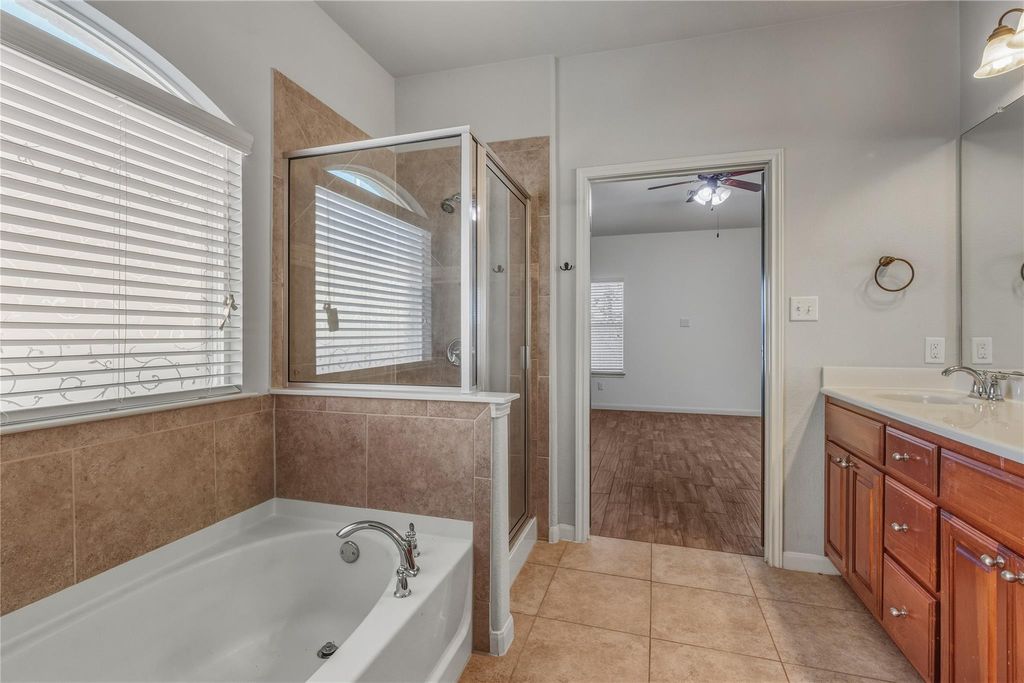 Discover a meticulously maintained 3-bedroom, 2-bath home in the desirable Village of Hidden Lake. Exceptional curb appeal welcomes you with lush landscaping and charming wood trim accents, while abundant natural light fills the kitchen, dining area, and living room, making every day feel bright and inviting. The primary suite shines with designer touches, a paneled accent wall, and two windows, complemented by a spa-like bathroom featuring a double vanity, a large tub, and a walk-in shower, plus a generous walk-in closet for ample storage. A versatile office or bonus space with French doors sits off the kitchen, perfect for remote work or creative pursuits. The laundry room offers cabinetry for organized storage. Step outside to a sizable backyard with a covered patio and an added wooden deck"”ideal for entertaining or relaxing in your own private retreat. This home has been exquisitely maintained with tasteful custom touches throughout, delivering comfort, style, and practicality in one outstanding package. Don't miss your chance"”schedule a showing today and envision your life here.