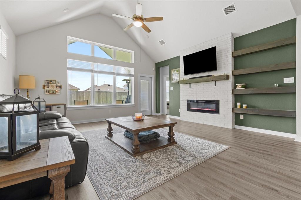 ASSUMABLE MORTGAGE AVAILABLE! Welcome to your dream home in the highly desirable Manor Commons community! This beautifully upgraded home offers 1,945 square feet of thoughtfully designed living space, built with quality craftsmanship by Chesmar Builders. Step inside to discover an open-concept layout enhanced by elegant quartz countertops, a spacious oversized pantry, and a flex room perfect for a home office, playroom, or guest space. The living area features a stunning electric fireplace with built-in shelving, creating a warm and inviting space to relax or entertain. Enjoy outdoor living year-round on the covered patio, complete with a gas line for grilling"”ideal for weekend barbecues. The home also includes front and back yard sprinkler systems for easy maintenance and lush landscaping. Throughout the home, you'll find modern, durable finishes, a generously sized primary suite with an en-suite bathroom, ample storage, abundant natural light, and energy-efficient features that enhance both comfort and convenience. Located just a short walk from the Timmerman Park, you'll enjoy frequent events, festivals, live music, and more"”right in your neighborhood. Manor Commons offers the perfect blend of peaceful suburban living with easy access to vibrant community events and amenities. Don't miss this exceptional opportunity"”schedule your showing today and come see why this home is truly one of a kind!