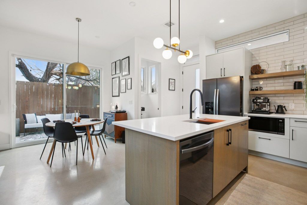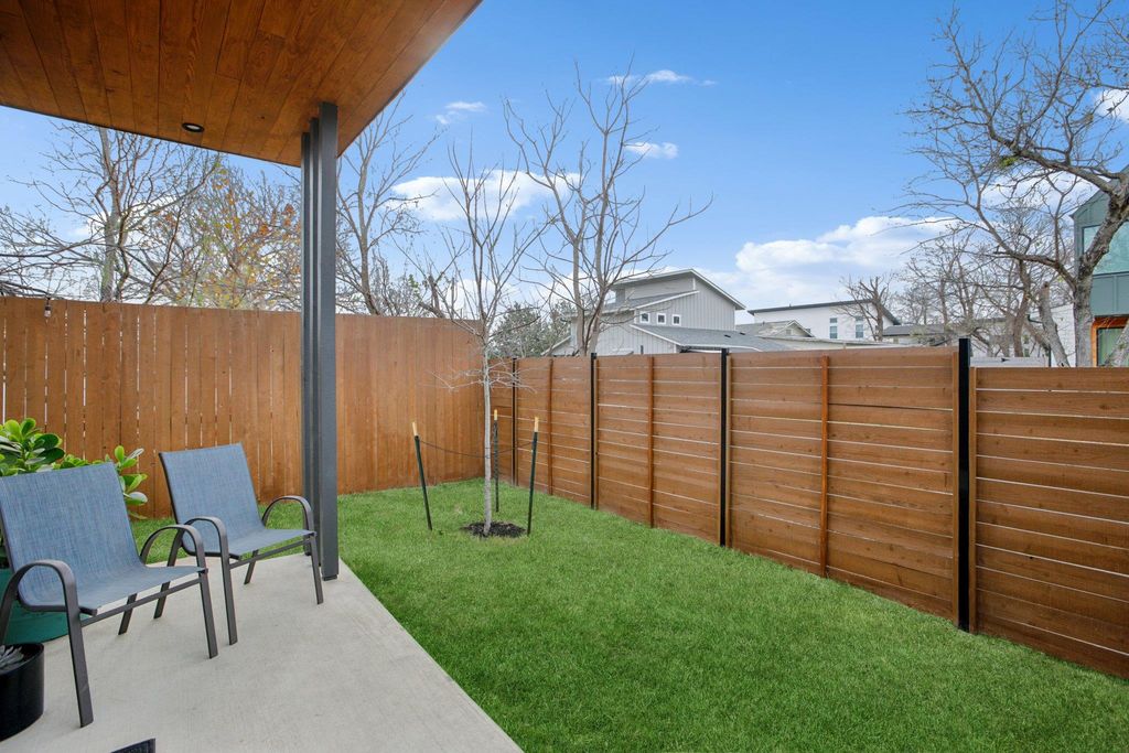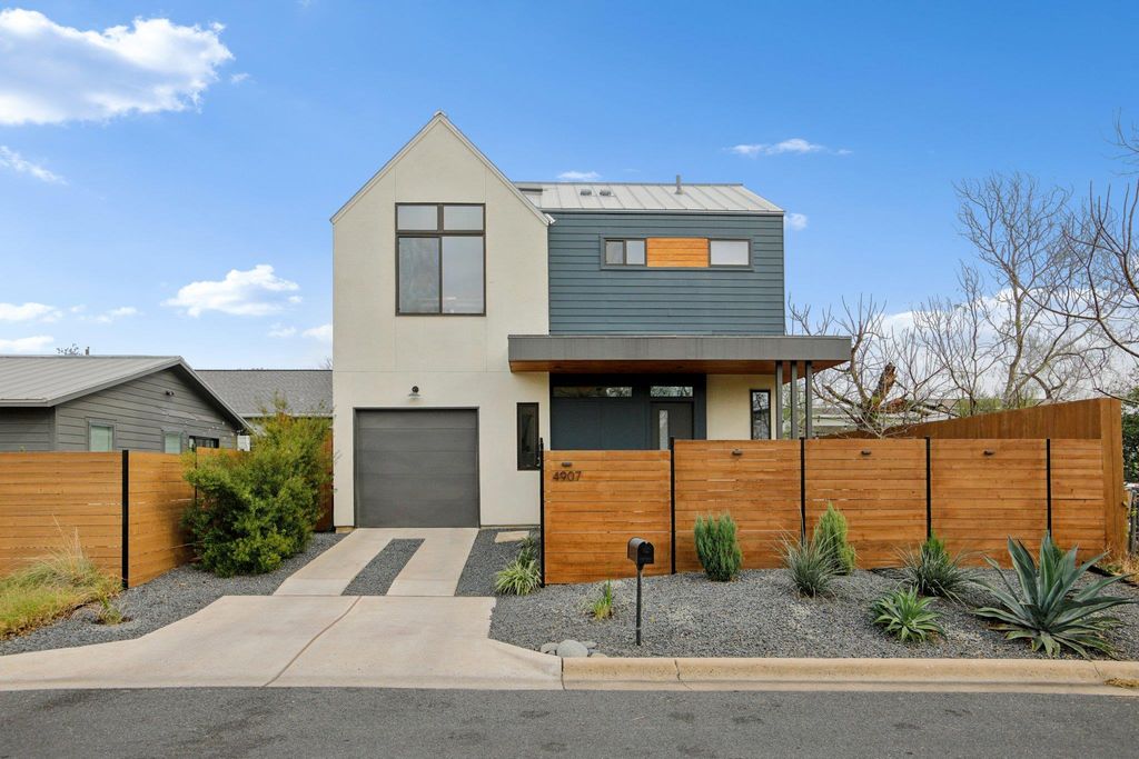 Welcome home to 4907 Delores Ave in vibrant East Austin. Built in 2022 and expertly designed, this property offers the independence of a single-family home"”no HOA fees, no shared access"”with the tax advantages of a split lot condo by splitting the taxable land value cost with the neighboring home. Don't let the 1,149 sq ft (per appraiser) footprint fool you: upstairs you'll find an additional ~142 sq ft screened-in porch"”a bonus flex space that isn't taxed as living area and can function as an office, lounge, or creative studio. You'll also appreciate the oversized 318 sq ft extra-deep one-car garage, ideal for a workshop, home gym, or extra storage. Outside, a fully fenced yard"”including the front yard"”creates true privacy, complemented by a custom metal gate at the front porch entry. Inside, the home is filled with natural light from expansive windows and skylights, and soaring ceilings throughout create an airy, loft-like feel. Modern-yet-timeless finishes are carried through every detail, including custom cabinetry and premium materials. The open-concept layout features a generous kitchen with island, a defined dining area, and a spacious living room"”perfect for entertaining or relaxing. Upstairs, the dramatic stairwell leads to a stunning primary suite with a private patio, walk-in closet and spa-inspired ensuite bath. All upper-level rooms"”including the screened porch/flex space"”feature elevated ceilings that make the home live even larger than its taxable footprint. Notable upgrades include full foam insulation, a high-efficiency variable-speed heat pump HVAC for energy savings, a 220V EV/Tesla-ready outlet in the garage, stucco exterior accents and a premium standing seam metal roof. And when you want to get out and explore, you're just minutes from East Austin favorites like Springdale General, Austin Bouldering Project, Palomino Coffee, Lift ATX, Micklethwait Craft Meats, and the Boggy Creek Greenbelt.