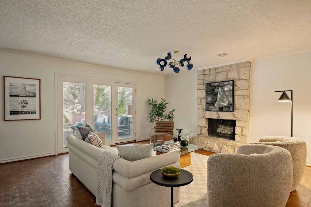 Perched high on a quiet street in Northwest Hills, this spacious two-story ranch offers the perfect blend of character, updates, and potential. Set on an expansive 0.464-acre lot, the home enjoys incredible backyard privacy with mature trees and multiple outdoor living areas"”an ideal retreat right in the heart of one of Austin's most established neighborhoods. Inside, you'll find four large bedrooms and 2.5 baths, plus generous living and entertaining spaces highlighted by a classic stone fireplace. The remodeled kitchen impresses with a large center island, abundant storage, sleek counters, modern backsplash, refinished cabinetry, and a coffee bar setup designed for morning rituals or evening entertaining. Recent updates ensure comfort and efficiency, including dual-zone HVAC with all new ductwork (2023), a water heater (2022), and the kitchen refresh. Upstairs, the primary suite offers walk-in closets and a private balcony with tree-top views. Secondary bedrooms are equally spacious, with two offering direct balcony access. Enjoy ultimate convenience with walkability to restaurants and shops on Far West, and close proximity to highly acclaimed schools"”Doss Elementary, Murchison Middle, and Anderson High. With a prime location, massive lot, and quality bones, this is a rare opportunity to move right in or make some light updates to make it your own.