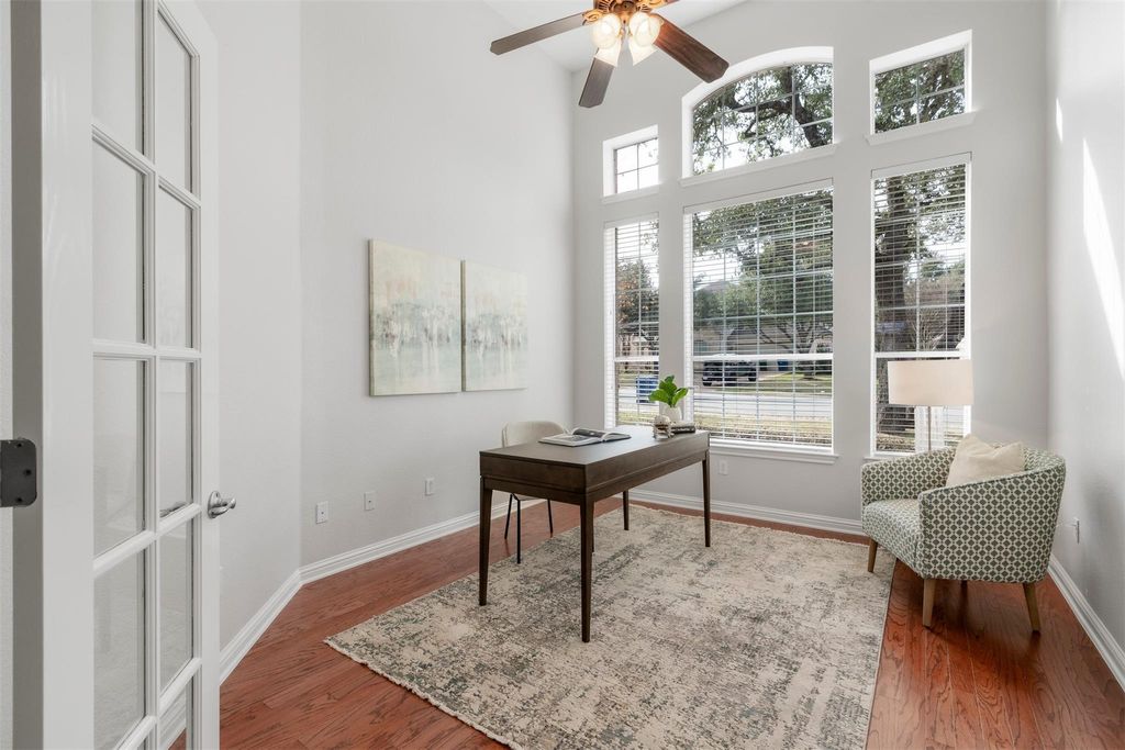 Circle C living at its best, with tree lined streets, a friendly community feel, multiple pools, miles of trails, playgrounds, and a full calendar of neighborhood events, all paired with easy access to Mopac and DT Austin. This well maintained 4 bedroom, 3.5 bath, 2 story home, with a new roof in 2021, offers generous living spaces, a dedicated office, and a game room, all surrounded by beautiful landscaping and mature trees. As you walk inside, a 2 story foyer creates an immediate sense of space. The dining area sits to the left, ideal for hosting gatherings, while the office provides a comfortable work from home setup. The foyer opens into a bright and lively living area where wood and tile flooring, high ceilings, a fireplace, and a wall of windows bring in natural light and backyard views while still feeling warm and inviting. The living space opens directly to the kitchen, making it easy to stay connected while cooking or entertaining. Granite countertops and a center island with seating offer room for both daily meals and casual get togethers. The gas cooktop is framed by a stone hearth and paired with a built in oven plus there is an additional oven, microwave, and ample storage throughout. The main floor primary suite has ample space to unwind with an ensuite bath that includes a dual vanity, soaking tub, separate shower, and walk in closet. Upstairs, a large game room anchors the second level, along with a nook with a built in desk, perfect for homework or projects. 3 additional bedrooms and 2 full bathrooms complete the upper floor. Out back, the screened in porch, with closable storm windows, creates a comfortable space to enjoy the outdoors year round. The backyard is shaded by mature trees and offers plenty of room for entertaining, play, or quiet afternoons. Zoned for acclaimed schools and located in one of Austin's most established neighborhoods, this home delivers space, flexibility, and a sense of community that continues to draw buyers to Circle C.