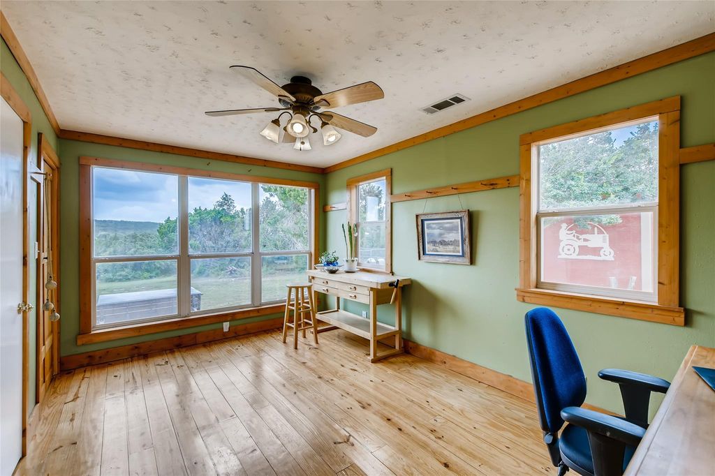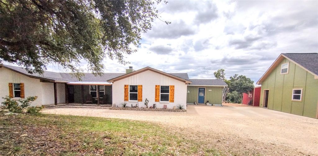 Leander COUNTRY LIVING, 5.39 acres in Honeycomb Hills, PRETTY PROPERTY, CLOSE IN, HILL COUNTRY VIEWS. WELL-SUITED FOR A BUSINESS, current operating storage rental lot facing Honeycomb Dr. CAN BE SUBDIVIDED. No HOA. Has been appraised. - beautiful corner acreage w plenty of room to build another home, business facility, or barns. Opposite corner from current home, w gated access, is suited for business location or ADDITIONAL home construction site. NEW WELL, NEW ROOF. No city taxes. Bring your horses, cows, chickens. View the impressive hills from your huge back porch! Private location, yet easy access. Spectacular views from every window! 4 bd-3ba ranch-style, modern updates. Many live oaks, red oaks, & 40' Monterrey oaks, and seasonal creek! Stone pathway, and charming front porch. Beautiful living area w massive exposed pine beams, abundant natural light throughout. Open concept. Bonus room with impressive views, perfect for a home office, study, creative space or, with adjacent bath, another bedroom. A second living area is attached to the primary through french doors. The primary bedroom: big beautiful wooded landscape and wildlife from its 4 windows and corner location, bath with granite countertops and a double barrier free shower. The other bedrooms have sliding barn door closets. FROG, 17'x32' bonus, bedroom loft, plumbed for 4th bath, with dormers and views, over the full, 24'x32', 3 car detached garage and work area. Out back entertain on the big, covered 36'X14'deck overlooks the creek bed and heavily treed hill country. Ethernet, Spectrum Internet.