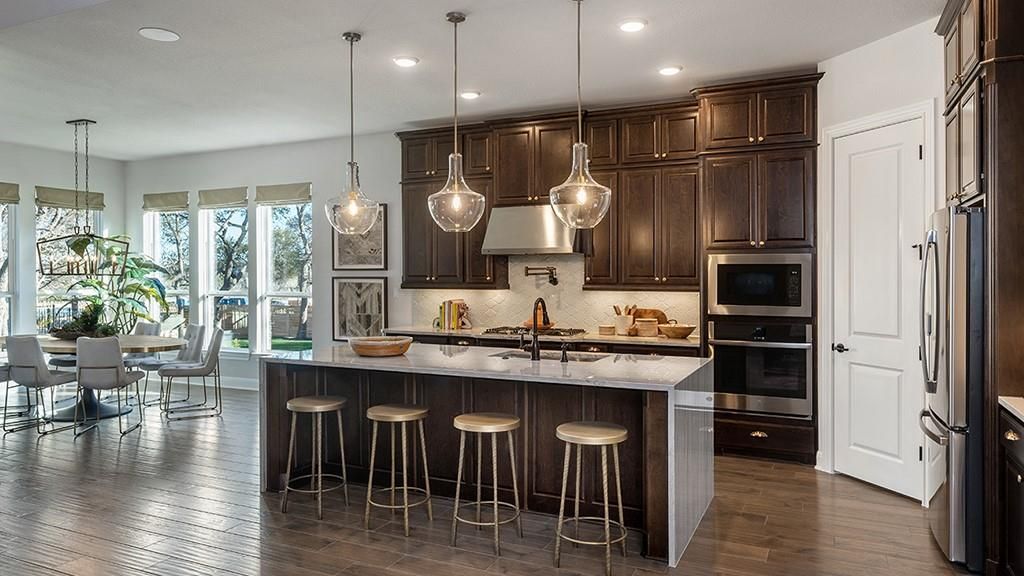 New Construction - November Completion! Built by Taylor Morrison, America's Most Trusted Homebuilder. Welcome to The Agave at 1225 Novara Trail in Travisso. This floor plan makes a lasting impression, beginning with a welcoming porch that opens into a classic foyer and a grand winding staircase. Just off the entry, you'll find a bedroom, powder room, full bathroom, and a versatile flex room"”perfect for customizing your space. The two-car garage includes extra storage and connects to a convenient entryway and laundry room. At the heart of the home, enjoy open-concept living with a spacious great room, chef-inspired kitchen, and elegant dining area. Spend peaceful evenings on your covered patio, then retreat to your secluded primary suite featuring a luxurious bath and walk-in closet. Travisso Capri offers unmatched luxury and craftsmanship in the prestigious Texas Hill Country. These spacious homes are designed with breathtaking views, flexible layouts, soaring ceilings, and thoughtful details"”including two first-floor bedrooms and private balconies. Just steps from your door, enjoy a Tuscan-style amenity center with a clubhouse, resort-style swimming pool and splash pad, fitness center, open-air pavilion with a fire pit, parks, playscapes, two tennis courts, and over 350 acres of open space. With top-rated schools and a prime location close to friends and conveniences, Travisso Capri is where elegance meets comfort. Plus, a brand-new amenity center is opening this summer! Additional Highlights Include: gourmet kitchen, slide in tub at primary bath, study, and bay window. Photos are for Representative Purposes Only.