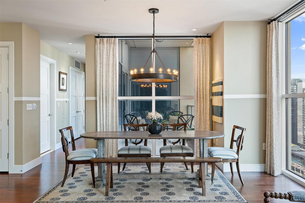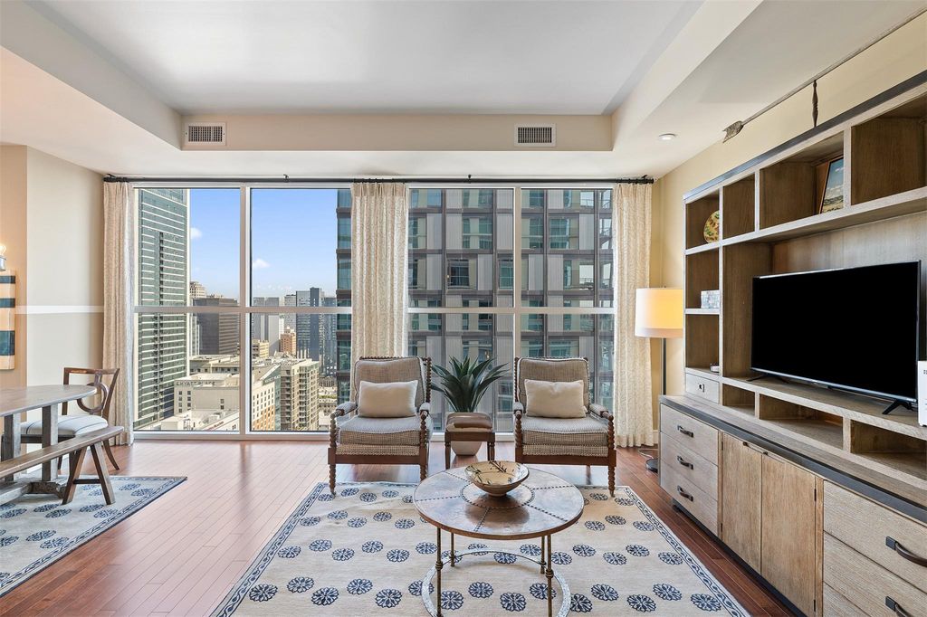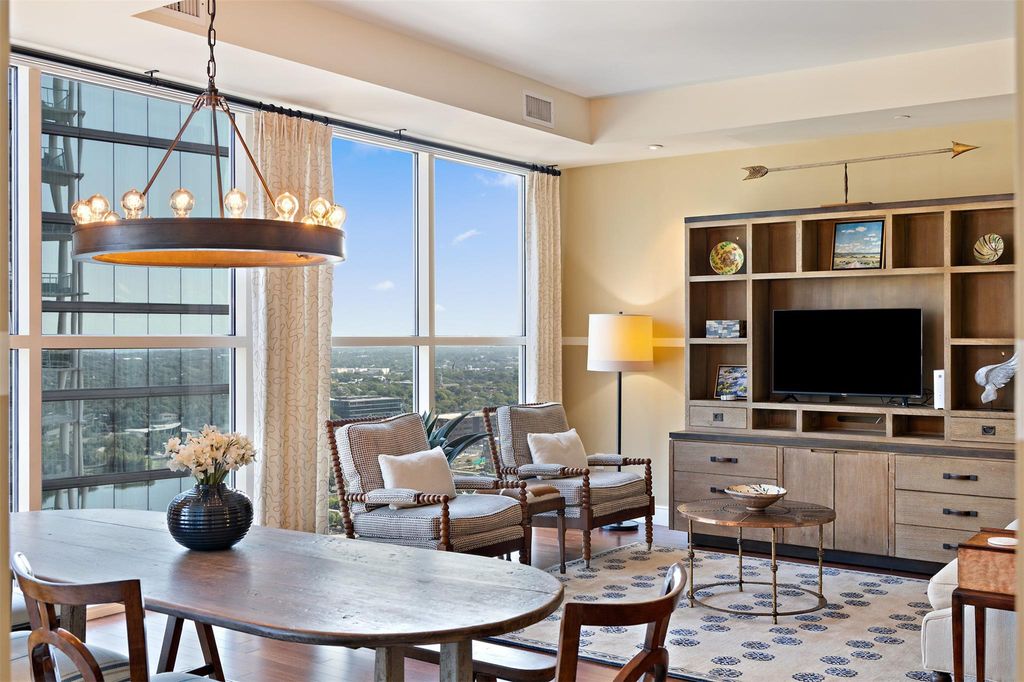 Perched above the city with sweeping views, this fully furnished residence pairs the ease of a lock-and-leave lifestyle with the indulgence of Four Seasons services. Inside, the open-concept living, dining, and kitchen area is framed by floor-to-ceiling windows that pull in the outdoors. A large, covered terrace extends the space even further, giving you front-row seats to Austin's sunsets and city lights. The kitchen is designed for gatherings and everyday life alike, with a granite breakfast bar, Wolf appliances, and a wine fridge ready for your favorites. The primary suite is generously scaled, with windows that open to the views and a marble-clad bath that feels like a spa. Dual vanities, a soaking tub, and a glass-enclosed shower bring both form and function, while the oversized walk-in closet keeps everything organized. Living here means more than just a home; it's a lifestyle defined by world-class amenities. The Four Seasons staff and services include valet, concierge, 24-hour room service, and access to beautifully curated spaces. Spend weekends on the rooftop pool deck, recharge in the fitness center, or host gatherings in the private entertaining rooms with a commercial kitchen. The library offers quiet sophistication, while secure garage parking with two reserved spaces adds peace of mind. The Four Seasons Residences blend luxury, convenience, and the kind of views that never get old, making this lease opportunity one of the city's rarest offerings.