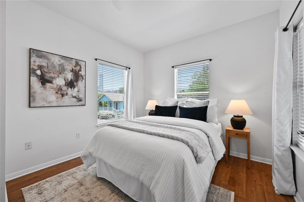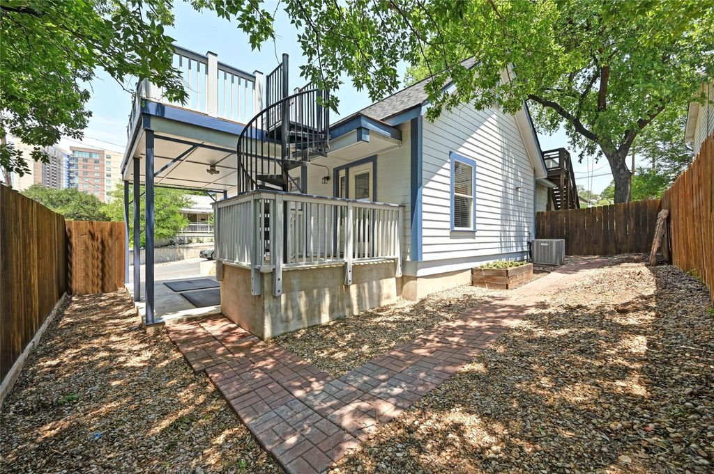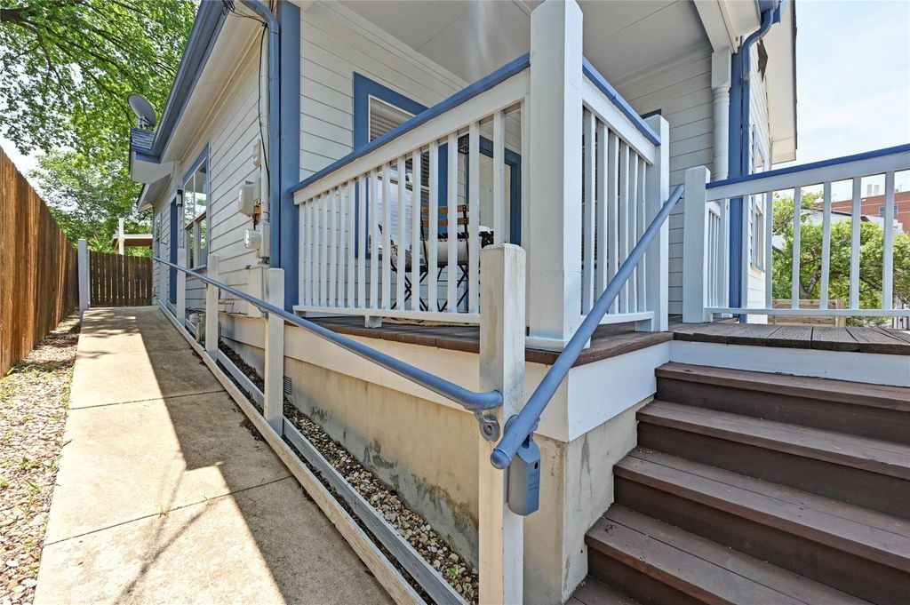 Motivated sellers. Location! Location! Nestled on a quiet street in the heart of vibrant East Austin, this charming bungalow is an oasis close to downtown. Savor the sunsets and skyline views from your private rooftop deck or walk nearby to a myriad of shops and restaurants such as Franklin's BBQ, Paperboy, Hillside Farmacy, Radio Rosewood, Loudmouth and Quickie Pickie. A beautiful park with playground and splash pad is just steps away and in view from the inviting, covered front porch. Built in 2005, the adorable drive-up appeal draws you in. This jewel box home features 2 bedrooms, each with a generous closet, 1 expansive bath, and tall ceilings throughout. The large bathroom separates the two bedrooms so as to offer privacy for all. Interior updates include new paint and sleek ceiling fans. Natural light in the expansive living room reveals the great flow into the kitchen. The stainless kitchen appliances and stack washer/dryer all convey with the house. Outside features an adjoining covered carport and rooftop deck to capture those downtown views. You'll appreciate the low maintenance of the composite rooftop decking, Hardie board siding around the house, and small, mostly fenced yard. A side entry ramp is available for stroller or wheelchair if needed. In addition to driveway parking, there's ample free parking in front and on the street. Enjoy this lock-and-leave home as a personal residence or a possible short-term rental"”the opportunities are limitless. With its fantastic local neighborhood options and proximity to The Capitol, UT and downtown, this location can't be beat!