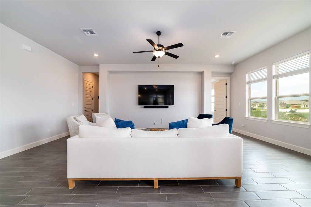This charming single-story home is located in the highly sought-after Sweetwater community in Austin, Texas. Offering 3 spacious bedrooms and 2 full bathrooms, this residence is perfect for families or those looking for comfortable living with modern conveniences. The open-concept floor plan features a bright and airy living space that seamlessly connects to the dining area and a well-appointed kitchen with granite countertops, stainless steel appliances, and ample cabinet storage. The primary suite boasts a private ensuite bathroom with dual vanities, a walk-in shower, and a generous walk-in closet. The additional two bedrooms are well-sized and share a stylish second bathroom. Enjoy the beautifully landscaped backyard, ideal for relaxing or entertaining. As part of the Sweetwater community, residents have access to resort-style amenities, including pools, a fitness center, hiking trails, parks, and a clubhouse. Conveniently located near top-rated schools, shopping, dining, and major highways, this home offers the best of Texas Hill Country living with the conveniences of Austin.