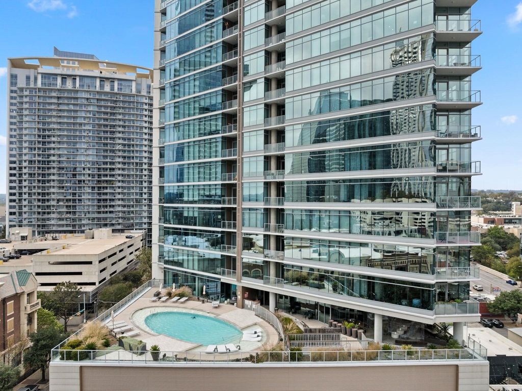Positioned on the 36th floor of Fifth and West, this expansive north and west facing residence captures iconic Austin skyline and Hill Country views. With 2,849 square feet of refined living space this residence is one-of-a-kind. Surrounded by glass, the living and dining room fill with natural light - wide-plank hardwoods, curated lighting and custom interior details create a warm yet modern atmosphere throughout. The kitchen is ideal for everyday living and elegant entertaining. A custom wine room serves as a bespoke collector's space and a striking architectural focal point, with walnut custom racking, designer lighting and capacity for approximately 1,200 to 1,500 bottles. A butler's pantry with a floor-to-ceiling window adds both function and sophistication. The primary suite is a private retreat with a spa-inspired oversized bathroom featuring a freestanding soaking tub, a walk-in shower, dual floating vanities, custom built-ins and two large closets. A beautifully appointed sitting area overlooks the city, offering the perfect place to enjoy Ausin's sunsets. Two patios grace the residence, one in the primary bedroom and one perched on the north-west corner of the building. Two additional bedrooms with en-suite bathrooms provide comfort and privacy for guests or family. Live at one of Austin's premiere addresses, with immediate access to downtown's finest dining, Lady Bird Lake, and the Hike and Bike Trail, or stay in and enjoy the premiere amenities that Fifth and West has to offer.