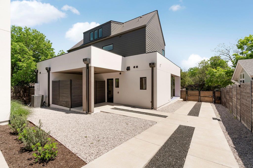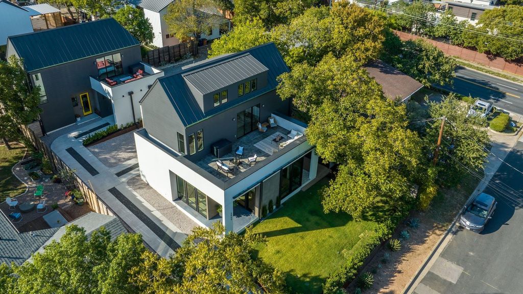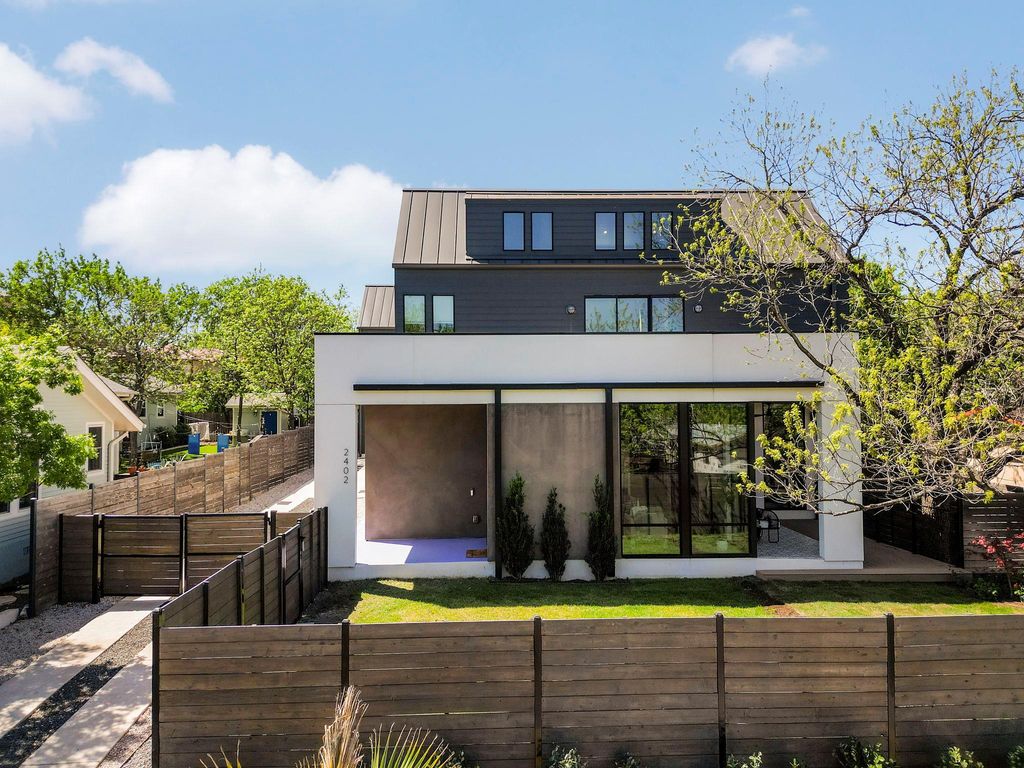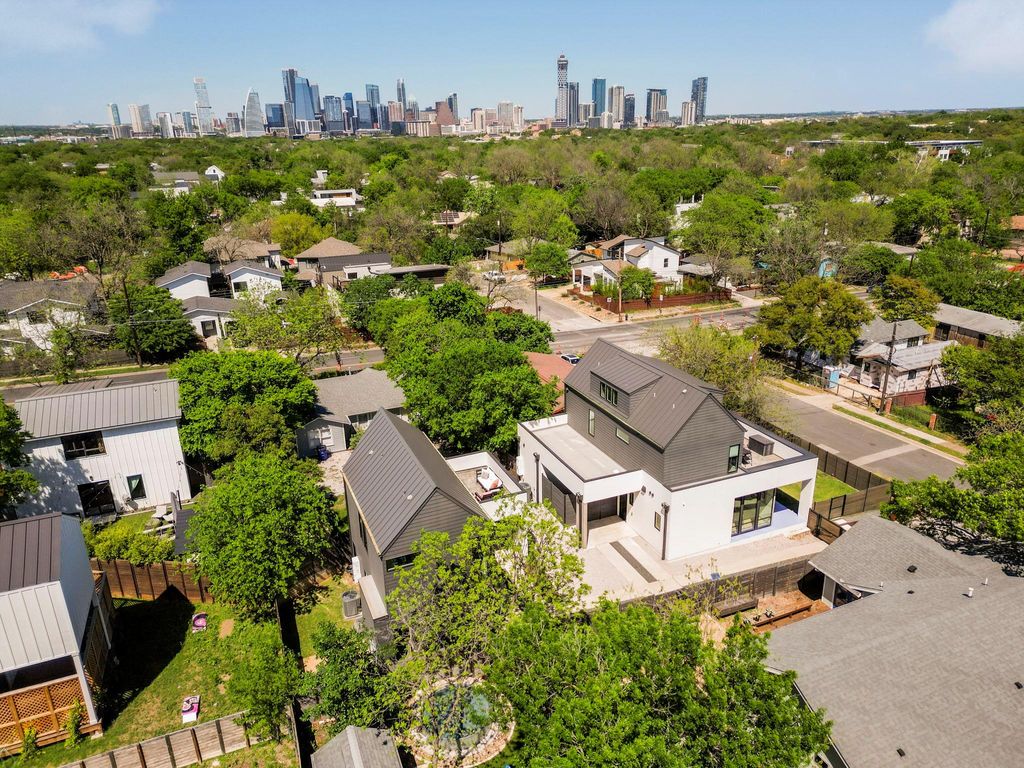 Fully gated, this rare compound offers a beautifully designed stand-alone home with iconic views of downtown Austin. This stunning construction will appeal to those who demand the best in quality design, finishes, and lifestyle. Meticulously chosen, high-end finishes span throughout both the exterior and interior, including James Hardi and Venetian stucco siding, Milgard windows and sliders, Athens white oak 7.5" plank wood flooring, foam insulation, 24-gauge standing metal roof, and so much more. This home comes complete with 4 bedrooms, 3.5 bathrooms, and a 1-car carport. The main level features a flawless, open concept floor plan with wood flooring, 10 ft ceilings, and floor-to-ceiling windows. The gourmet kitchen is every chef's dream with Thermador stainless steel appliances, Quartz countertops, Brizo plumbing fixtures, and a Superior lighting fixture package. The luxurious owner's suite is located on the main floor and boasts a spa-like ensuite bath and oversized walk-in closet. Head up to the 2nd floor, where you will find 2 guest bedrooms and a full guest bath. Take one more staircase up to an expansive 3rd floor flex area that can be used any way the owner sees fit. Enjoy the private backyard with a covered patio, eye-catching stained cedar fencing, and beautiful landscaping with an irrigation system. The location cannot be beat with this gorgeous condo, only a few minutes from DT Austin, South 1st and South Congress, and an abundance of iconic shopping and dining options.
