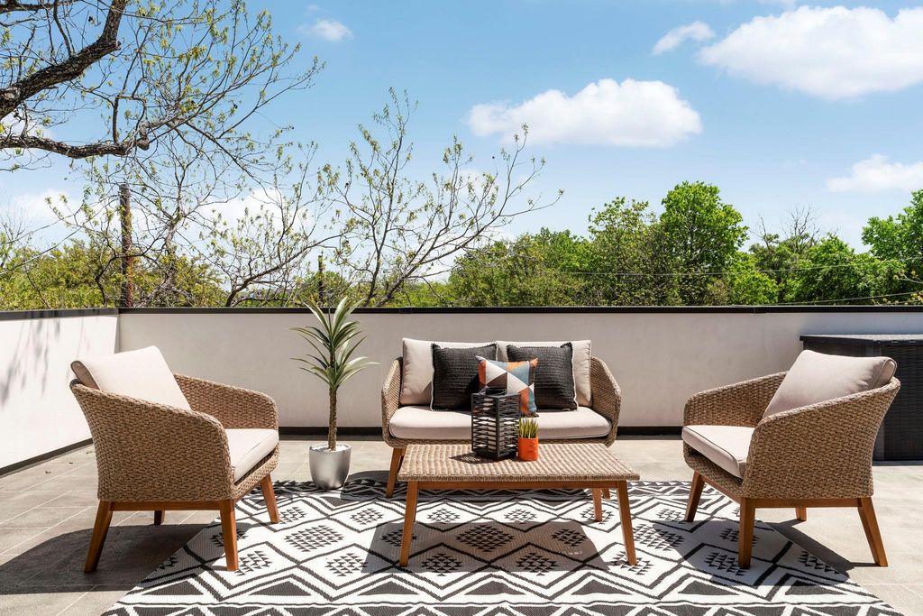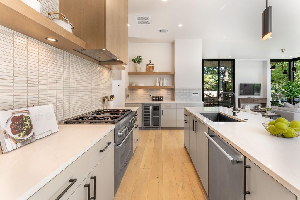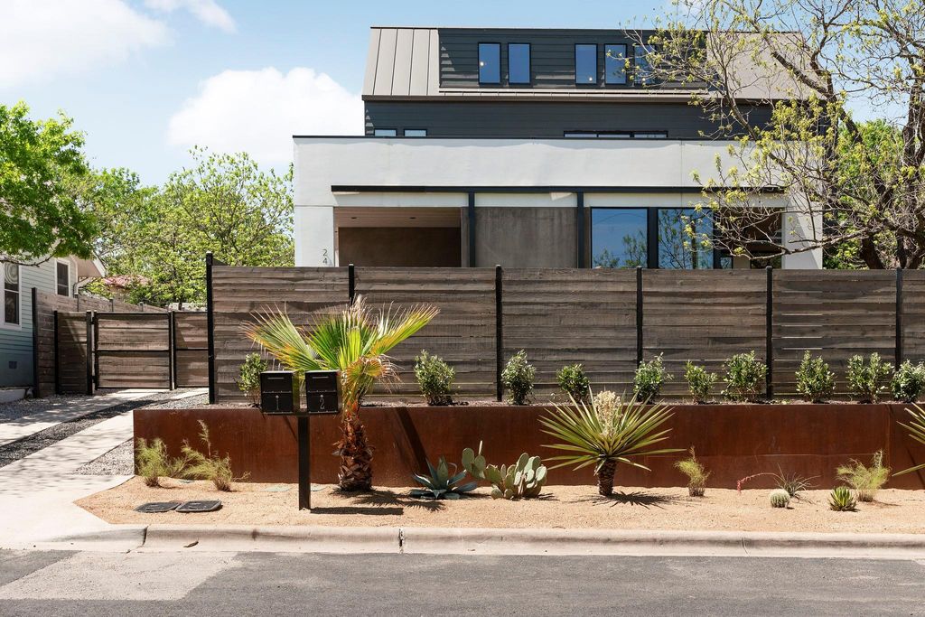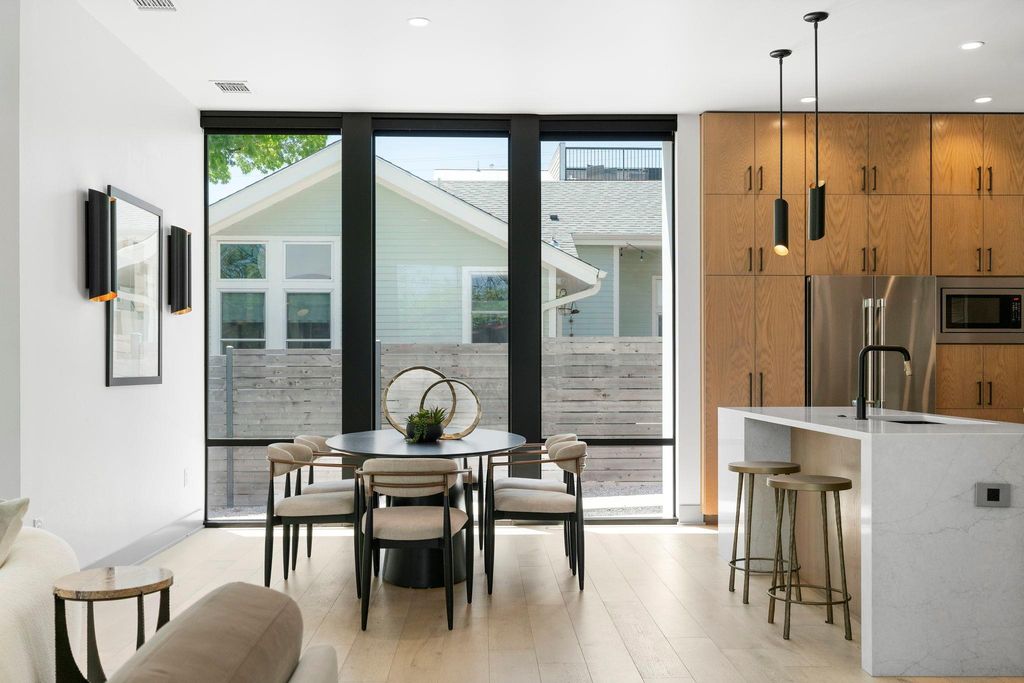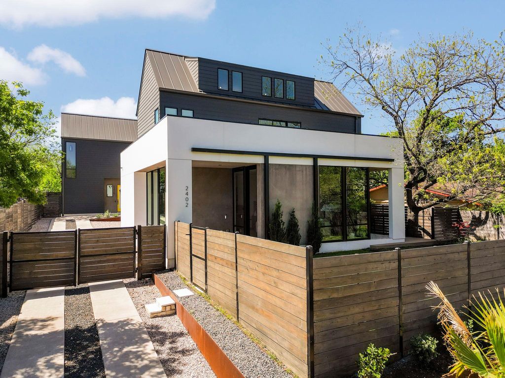 Fully gated, this rare compound offers a beautifully designed stand-alone home with iconic views of downtown Austin. This stunning construction will appeal to those who demand the best in quality design, finishes, and lifestyle. Meticulously chosen, high-end finishes span throughout both the exterior and interior, including James Hardi and Venetian stucco siding, Milgard windows and sliders, Athens white oak 7.5" plank wood flooring, foam insulation, 24-gauge standing metal roof, and so much more. This home comes complete with 4 bedrooms, 3.5 bathrooms, and a 1-car carport. The main level features a flawless, open concept floor plan with wood flooring, 10 ft ceilings, and floor-to-ceiling windows. The gourmet kitchen is every chef's dream with Thermador stainless steel appliances, Quartz countertops, Brizo plumbing fixtures, and a Superior lighting fixture package. The luxurious owner's suite is located on the main floor and boasts a spa-like ensuite bath and oversized walk-in closet. Head up to the 2nd floor, where you will find 2 guest bedrooms and a full guest bath. Take one more staircase up to an expansive 3rd floor flex area that can be used any way the owner sees fit. Enjoy the private backyard with a covered patio, eye-catching stained cedar fencing, and beautiful landscaping with an irrigation system. The location cannot be beat with this gorgeous condo, only a few minutes from DT Austin, South 1st and South Congress, and an abundance of iconic shopping and dining options.