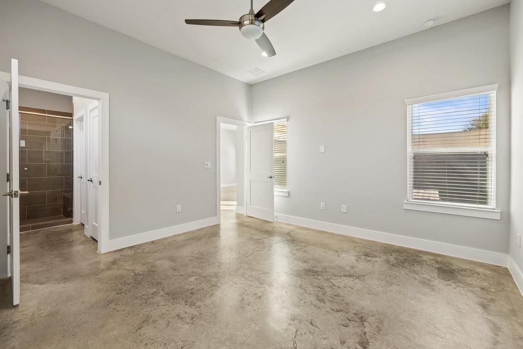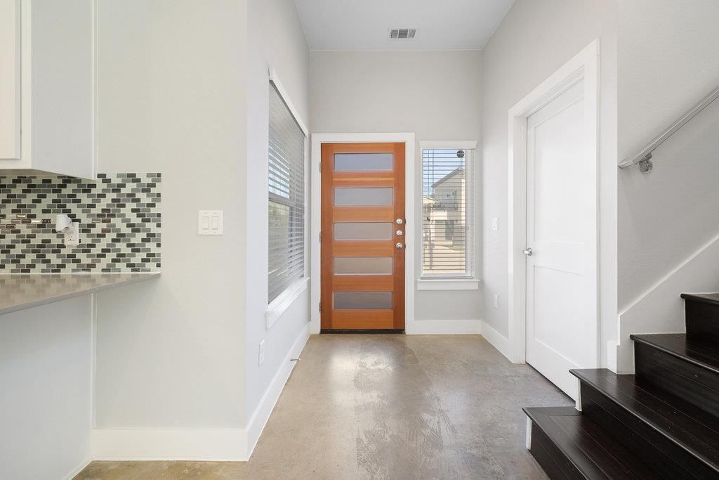 Bright and stylish 2-bedroom, 2-bath home just minutes from Town Lake and the city's most beloved East Side hotspots. Designed with a modern open floor plan, this home is perfect for entertaining. Sliding glass doors connect the airy living space to a private backyard, ideal for al fresco dining or weekend lounging. The main level features sleek stained concrete floors and a spacious kitchen complete with stone countertops, a tile backsplash, stainless steel appliances, and bar seating that flows seamlessly into the living area. The main-floor primary suite offers a private retreat with a modern ensuite bath boasting a double vanity, walk-in shower, and walk-in closet. Upstairs, warm wood flooring leads to a versatile flex space, perfect for a home office, Peloton setup, or cozy reading nook. The second bedroom is tucked away for privacy, along with a full bath featuring ample counter space and a large walk-in shower. A beautifully maintained home in a location that places you near iconic East Austin favorites like Justine's, De Nada, Central Machine Works, and Dainty Dillo, and less than 10 minutes from the airport.