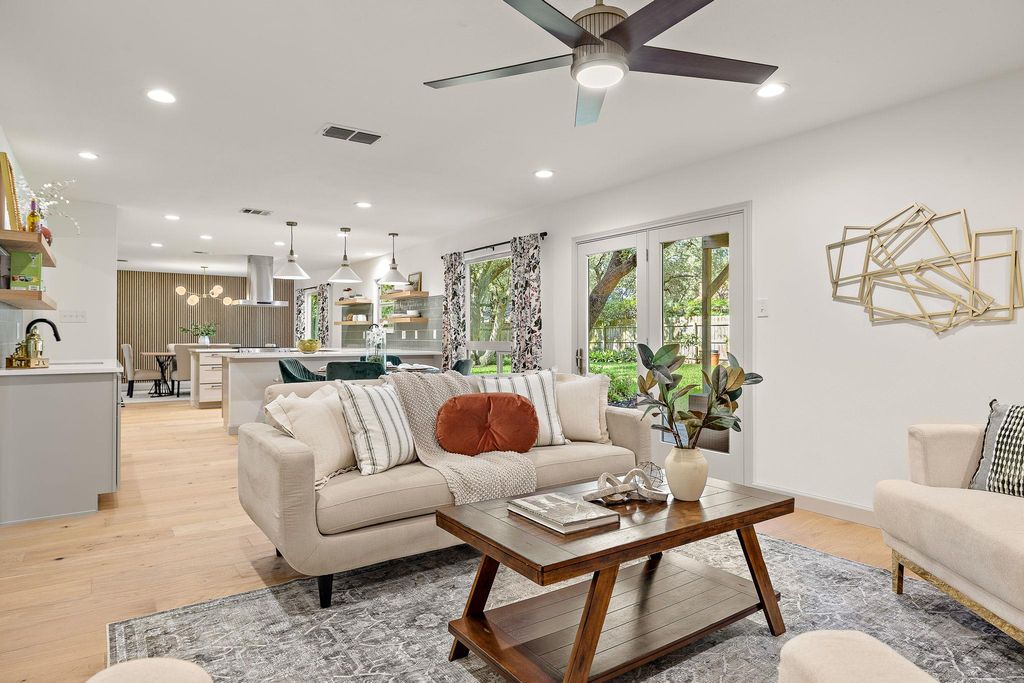 In the quiet heart of Spicewood Estates lies an exquisitely reimagined modern retreat, where timeless design meets contemporary luxury. This 4-bedroom, 3-bathroom home, with its two generous living areas, unfolds across 3,000+ square feet of elegant living space. It is set on a secluded, beautifully wooded lot with lush landscaping, creating a private sanctuary just moments from top-rated schools. The home's narrative begins with high-end oak floors guiding you through serene, open spaces. For the home chef, a gourmet kitchen with quartz countertops and a large breakfast bar becomes the epicenter of entertainment, flowing effortlessly into the main living areas. The expansive primary suite is a true haven, complete with a convenient wet bar, dual closets, and a tranquil, spa-like bath with a soaking tub and wet room shower. An ideal guest bedroom is located on the main floor, while the second level hosts the other three oversized bedrooms. Custom vanities, bespoke tile, and thoughtful lighting elevate each space. Outside, the property is an oasis with a covered patio, deck, and private terrace"”perfect for a quiet morning coffee or an evening under the stars. This rare Austin gem is a masterful blend of tranquility, luxury, and thoughtful design.