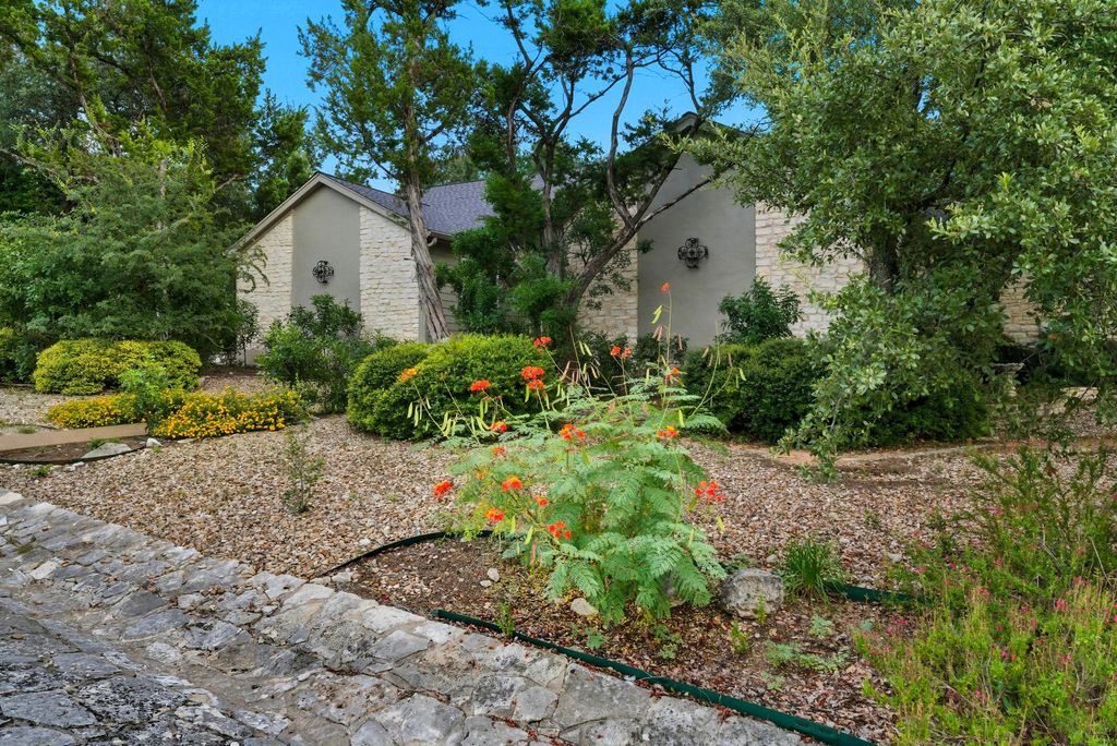 Welcome to your private Lakeway sanctuary. Nestled on a beautifully treed .38-acre lot, this single-story retreat offers the perfect blend of comfort, style, and outdoor living. Mature landscaping surrounds an expansive wood deck"”ideal for both peaceful mornings and lively gatherings. Step through modern double doors into the inviting main living area, featuring built-in shelving, a wet bar, updated lighting, and French doors that open seamlessly to the backyard. The kitchen is a true showpiece with custom cabinetry, a center island, built-in display shelving, wine fridge, and an inviting eat-in dining space. Thoughtfully designed, the home offers secondary bedrooms on one side"”one currently serving as a study"”along with a beautifully updated shared bathroom. The private primary suite, with direct backyard access, includes a spa-inspired bathroom with a sleek walk-in shower. The backyard is the heart of this property"”a tranquil oasis filled with lush greenery, vibrant flowers, shaded seating areas, and a charming fountain. It's the kind of space you may never want to leave. All of this is located just minutes from Lakeway's community pool, scenic trails, shopping, and dining, making it the perfect place to call home.