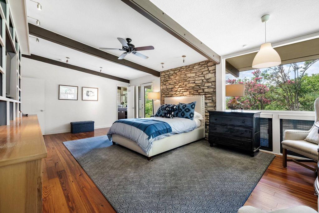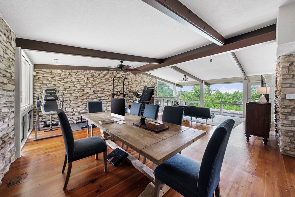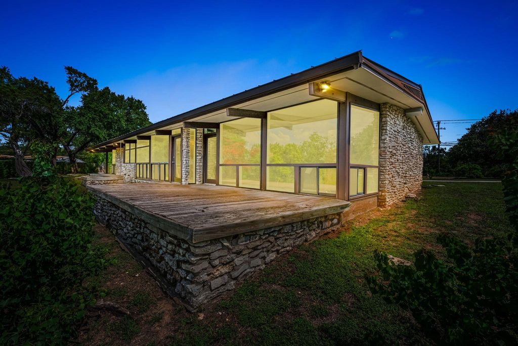 1200 Redbud Trail presents a rare opportunity on a spacious 1.3-acre lot in the heart of Westlake, just minutes from downtown. This authentic mid-century home is ready for a transformation, offering the potential for a complete teardown or renovation. The existing home features rough stacked stone walls, floor-to-ceiling windows, high-end Wolf and Subzero appliances, polished concrete, and reclaimed pine floors. The layout includes 3 bedrooms, 2 baths, and a separate office with its own entrance, ideal for remote work. A covered deck off the Master Suite and a small workshop add to the property's potential. The oversized wine fridge in the utility room offers an extra touch of luxury. The secluded privacy of the lot provides a tranquil retreat while maintaining easy access to the best of Westlake and downtown Austin. Renderings of a potential new build are available, showcasing the possibilities for creating a modern dream home. Whether you choose to renovate or start fresh, 1200 Redbud Trail offers endless possibilities in a highly coveted location.