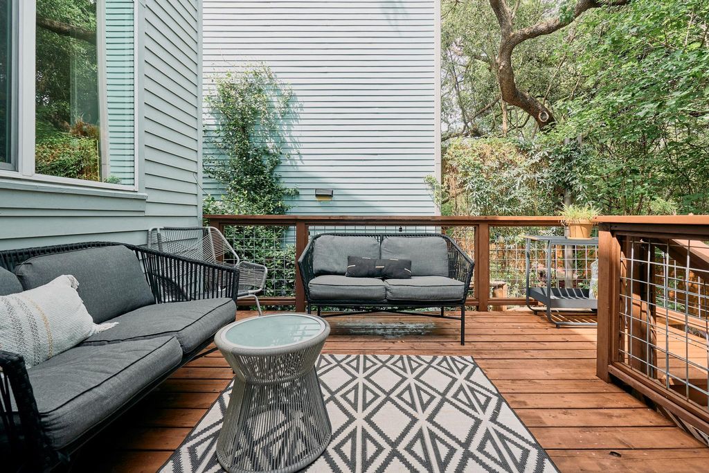 Nestled among the trees in Central Austin, this two-story home in the 04 offers the perfect balance of modern style and cozy living. Soaring ceilings, Velux skylights, and expansive picture windows create a canvas for natural light, warming the rooms and offering glimpses of the surrounding tree canopy. Thoughtfully curated spaces feature colorful wallpaper, unique hardware, and custom lighting, giving each room its own distinct character while blending seamlessly. The main floor boasts an open layout, with generous windows overlooking your spacious deck and the newly installed lush artificial turf - visible from both the kitchen and living room. Natural light truly pours into the living room from two large skylights, illuminating the space. The kitchen, just steps away, features a stylish concrete tile peninsula and ample room for cooking or entertaining. A completely redesigned half bath on this floor showcases stunning wallpaper and a vanity that is both beautiful and functional. Ascending to the second floor, you'll discover the inviting primary bedroom. This serene sanctuary features an en suite bathroom, high vaulted ceilings, and enchanting treehouse views, creating a quiet retreat. Also on the second floor are two additional spacious bedrooms, a clever nook perfect for a desk, a laundry room with gorgeous wallpaper and expansive shelving, and a second full bathroom. Stepping onto your back porch, you'll find an extended deck, ideal for sipping your morning coffee while you listen to the birds or entertaining guests under the stars. The deck leads to a beautiful, no-maintenance backyard featuring artificial grass and a convenient built-in area for a fire pit. This home is zoned for the highly sought-after Zilker Elementary and is only steps away from Tom Lasseter Park or South Austin favorites like Loro, San Gines, Kiindi, Bird Bird Biscuit, Radio, Vera Cruz, and Matt's El Rancho. All values are approximate and to be verified.