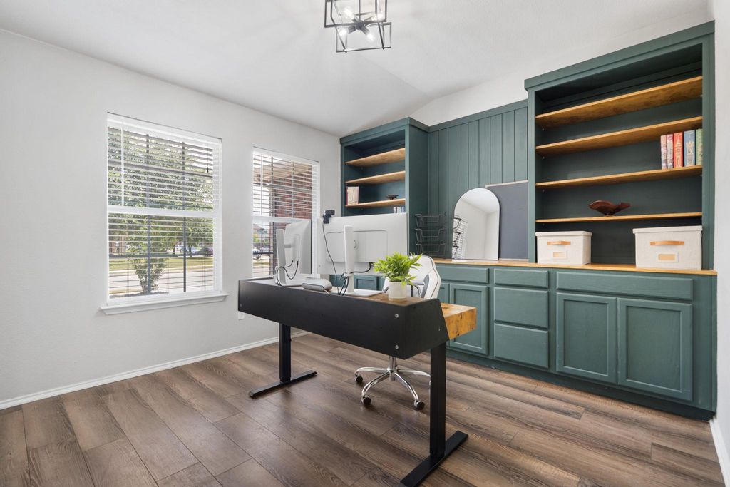 Welcome to this beautifully updated 4-bedroom, 2-bath home in the sought-after Park at Blackhawk community! With 1,936 sq ft of well-designed living space, this home offers a dedicated office with custom built-in bookshelves, a flexible bonus room, and stylish decorator touches throughout. You'll love the updated fixtures, modern faucets, ceiling fans, and freshly painted cabinets "” all adding a clean, polished feel. Energy-efficient solar panels help keep utility costs low, and brand-new carpet will be installed at closing for a truly fresh start. Step outside and enjoy everything this community has to offer: a nearby neighborhood park, a peaceful lake perfect for fishing, and miles of walking and biking trails right at your fingertips. Plus, you're minutes from Costco, grocery stores, restaurants, shopping, and only about 30 minutes to downtown Austin, Tesla, and the airport. This home blends comfort, style, and convenience in all the right ways "” come see what makes it special!