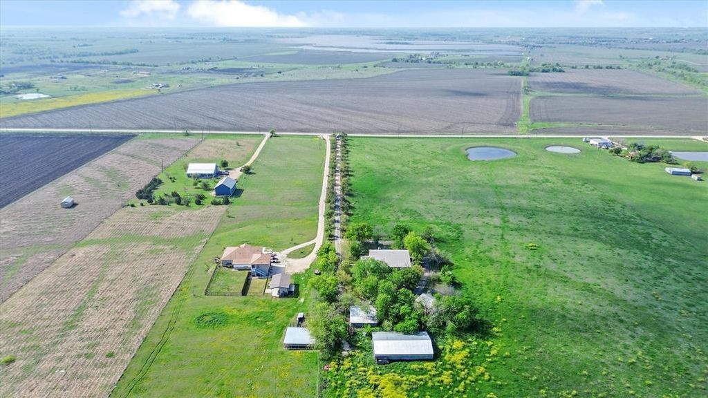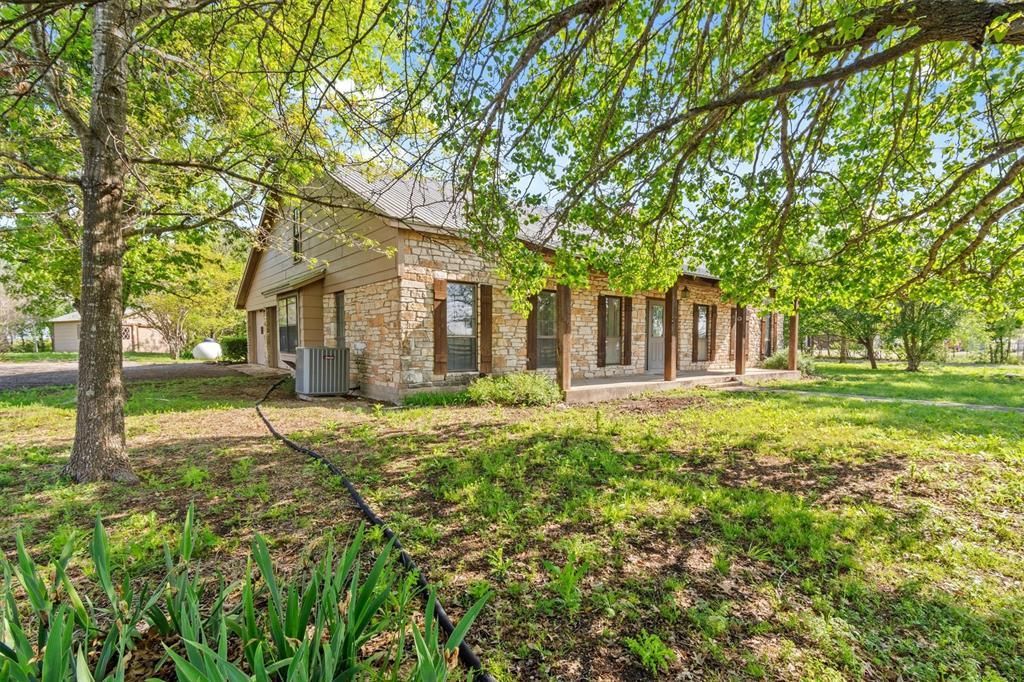 Nestled on five peaceful acres in the countryside in Coupland, this charming property offers the space, privacy, and quiet that make country living so appealing, while still being just a short drive from modern conveniences, including the Taylor Samsung facility. Set back from the road, a picturesque gravel drive lined with mature Live Oaks leads to a thoughtfully built Austin Stone home that blends character with comfort. Inside, the split three bedroom, two bath layout provides both functionality and privacy, while the spacious main living area features a dramatic vaulted ceiling and a stone fireplace that anchors the home and creates a welcoming gathering space. The open kitchen and dining area flow easily into the living room, making everyday living and entertaining effortless. Outside, both the covered front porch and covered side patio invite you to slow down and are perfect for rocking chairs, morning coffee, or unwinding in the evenings while taking in wide-open views of the surrounding land. The property is well equipped with both an attached and detached workshop/garage, along with additional outbuildings offering flexibility for storage, hobbies, or agricultural use. A fenced coastal bermuda pasture provides room for animals or future projects, completing the true country setting. Come sit on the porch, take a deep breath, and imagine the lifestyle. Schedule your private showing today to experience this Coupland retreat in person