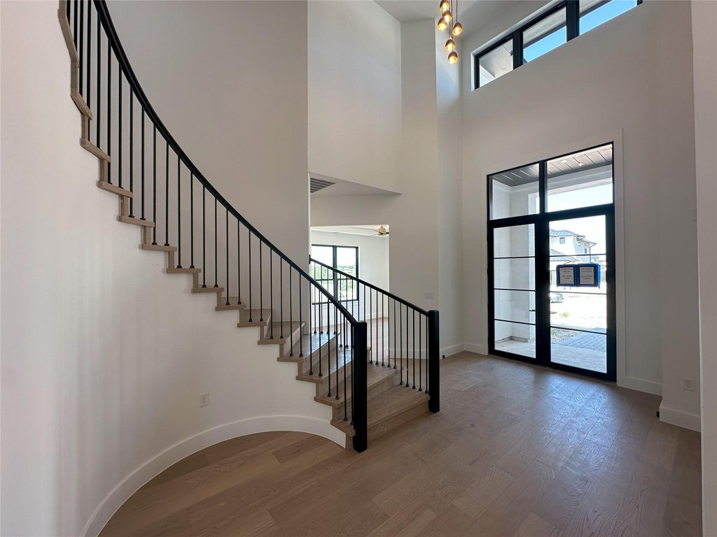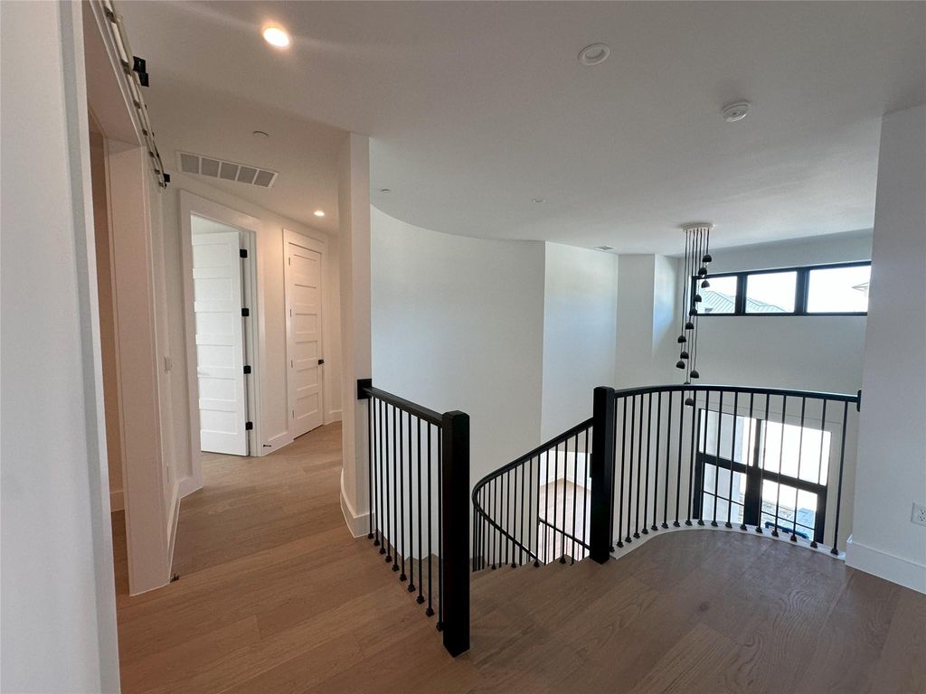 Welcome to 5903 Moondust Way, an exceptional luxury home in Milky Way at River Place, Austin's highest elevation and the first new home community in this prestigious area in more than a decade. Built by M Signature, this residence features five bedrooms, three full baths, one half bath, and four spacious living areas including a private study, media room, gameroom, and an open-concept family room. A dramatic entry with soaring ceilings and a curved staircase sets the tone for timeless design throughout. Wide plank hardwood and tile flooring extend through every room with no carpet. The gourmet kitchen is designed for both elegance and functionality, offering a waterfall island, 63-inch soft-close cabinetry, a JennAir professional dual-fuel range, and designer finishes that seamlessly connect to the dining and family spaces. The first-floor primary suite is a true retreat, highlighted by vaulted ceilings and a spa-style bath featuring a freestanding soaking tub, walk-in shower, dual vanities, and a generous walk-in closet with direct access to the utility room. Upstairs you'll find four additional bedrooms, a gameroom with an overlook into the formal dining area, and a media room with barn doors and prewiring for sound and data. Step outside to a beautifully landscaped backyard centered around a private in-ground pool, perfect for relaxing or entertaining. Additional features include a three-car garage, standing seam metal roof, Andersen windows, tankless water heater, spray foam insulation, and a high-efficiency HVAC system with a heat pump. Zoned to River Place Elementary and Vandegrift High and located near River Place Country Club, Sun Tree Park, and miles of scenic trails, this home offers exceptional design, comfort, and location.