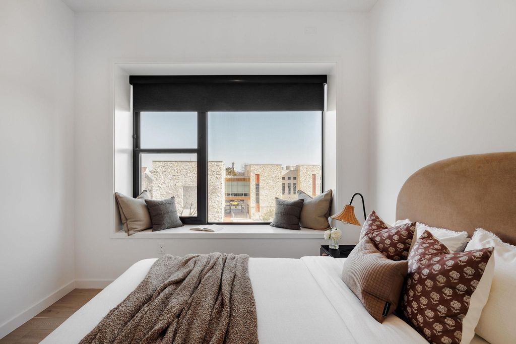 A rare blend of quiet luxury and downtown lifestyle, this 2-bed, 2-bath + Office corner unit has protected views over the historic French Legation Park and the building's best floor plan for remote working. Designed for entertaining and productivity, the unit features a dedicated office-space, spacious living area, a primary suite with a massive walk-in closet, In-unit laundry, and a spacious second bedroom with views overlooking the illuminated Texas Museum at night. The unit features elevated upgrades, including remote-controlled custom blinds, designer lighting, fluted walnut panelling on the island, and champagne-gold hardware. The unit also features floor-to-ceiling windows, white oak floors, a stainless steel appliance package, and designer tile finishes throughout. Best of all, this unit includes two premium parking spots located immediately next to the elevator, both equipped with private, dedicated EV charging - Plus a coveted 10x10 on-site storage unit. The residence is located in the Tyndall, a full-service building with 24/7 concierge, on-site staff, an incredible city-view pool, gym, resident lounge, dog run, outdoor grills, and office/meeting rooms. Located in a walkable neighborhood, just steps from Whole Foods, Target, and a short stroll to some of Austin's best restaurants and nightlife on the East side. This unit offers the absolute best living Austin has to offer.