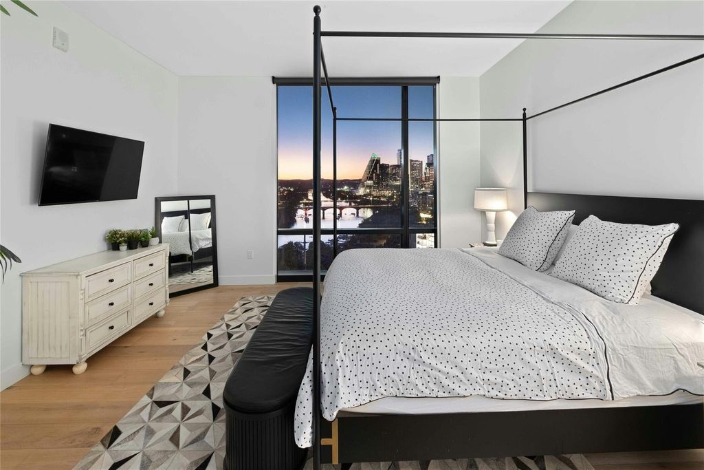 This luxurious, fully furnished 3-bedroom, 3-bathroom residence at the coveted 70 Rainey epitomizes elegance and modernity, featuring two isolated parking spaces close to the elevator. From the moment you enter, bespoke finishes and panoramic views of Lady Bird Lake greet you. European wide-plank white oak floors lead you through the residence, past floor-to-ceiling windows that bathe the space in natural light. The open floor plan seamlessly integrates living areas with a spacious outdoor terrace, ideal for entertaining. A chef's kitchen boasts state-of-the-art Miele appliances, sleek quartz countertops, and ample storage. The expansive primary suite offers stunning city views and a spa-like bathroom with dual vanities, a deep soaking tub, marble-tiled shower, and a custom-built walk-in closet. A generously sized guest bedroom features an en-suite bathroom. The condo also includes a versatile den, perfect as a home office or extra bedroom, and a large utility room equipped with a full-sized washer and dryer. This residence promises an unmatched blend of luxury and convenience in a prestigious setting. 70 Rainey redefines luxury living in downtown Austin with its 173 high-rise residences designed by Page and developed by Sackman Enterprises. This iconic tower offers over 51,000 square feet of private amenities, including a rooftop garden with an infinity pool, cabanas, lush green spaces, and more, all overlooking Lady Bird Lake and the cityscape.