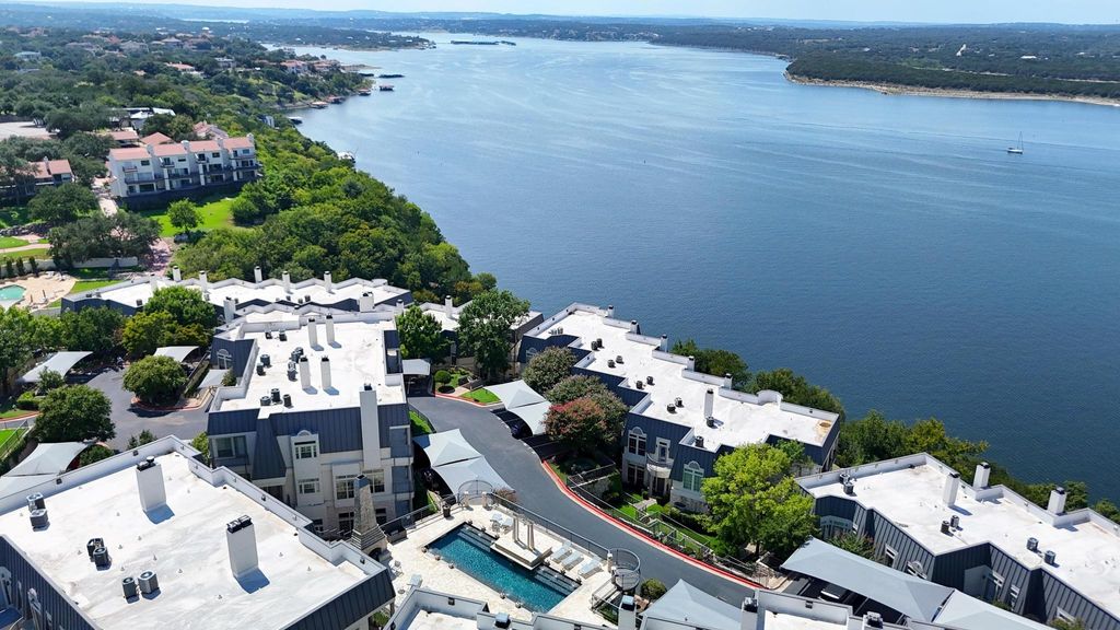 Seller to contribute up to 6 months of HOA Dues in Advance for Buyer! | Welcome to the Villas on Travis! This 2-bed, 2-bath condo offers 1,204 square feet of lakeside living with access to resort-style amenities on Lake Travis. The open layout is all on one level. Features include a spacious family room with a fireplace, a private primary suite with double vanities, walk-in closet, and direct patio access, and a covered balcony perfect for relaxing outdoors. This unit offers a ton of natural light and views of Lake Travis from the covered outdoor living area! Enjoy the added value, comfort and efficiency of a brand-new full A/C system (installed June 2025, $10K investment), new garage disposal, washer/dryer in unit, and a refrigerator conveying with the sale of the property. Community amenities include two pools, hot tubs, fitness center, sport and tennis courts, day dock with tram to Lake Travis, and gated security. HOA covers water, sewer, cable, internet, and exterior maintenance for easy lock-and-leave living. Located in highly rated Lake Travis ISD, with quick access to shopping, dining, and entertainment. Whether you're seeking a primary residence, weekend retreat, or investment opportunity, Unit X-201 delivers. A must see!