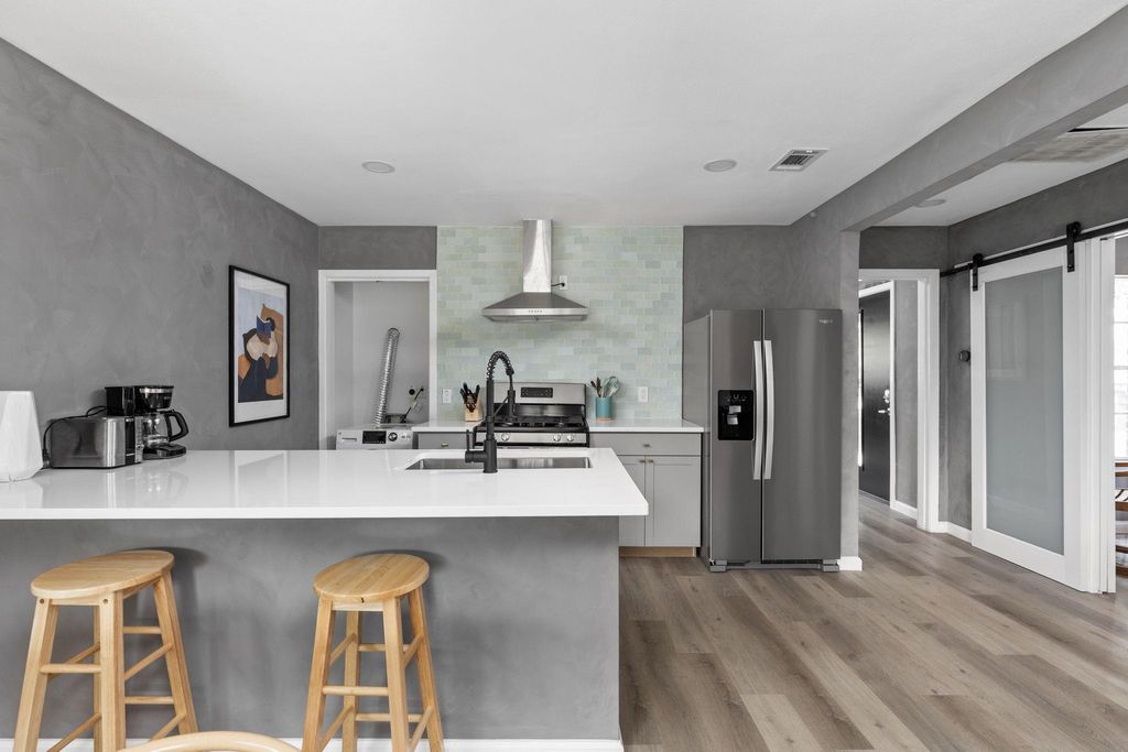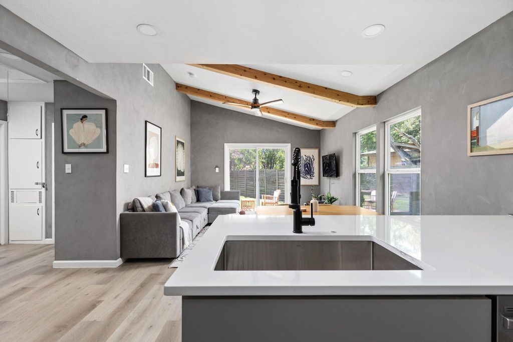 Tucked beneath the shade of mature trees in one of South Austin's most loved neighborhoods, this beautifully remodeled home invites you to settle in and stay awhile. Thoughtfully redesigned with warmth and intention, every detail"”from the soft, natural light that fills the open living space to the modern finishes throughout"”creates a sense of comfort and ease. The kitchen is the true heart of the home, with sleek quartz countertops, stainless steel appliances, and an oversized island where friends can gather and everyday meals turn into memories. The primary suite offers a quiet retreat with its own spa-like bath, while two additional bedrooms provide space for guests, an office, or little ones to grow. Outside, the generous backyard is full of possibility"”whether it's weekend barbecues under the trees or plans for future expansion on this SF-3 zoned lot. Just minutes from South Lamar favorites, Central Market, and local coffee shops, this home isn't just move-in ready"”it's a fresh start in a place where life feels a little more connected, a little more inspired, and completely Austin.