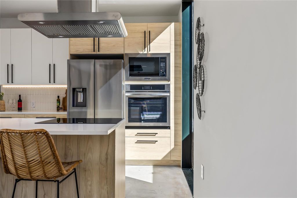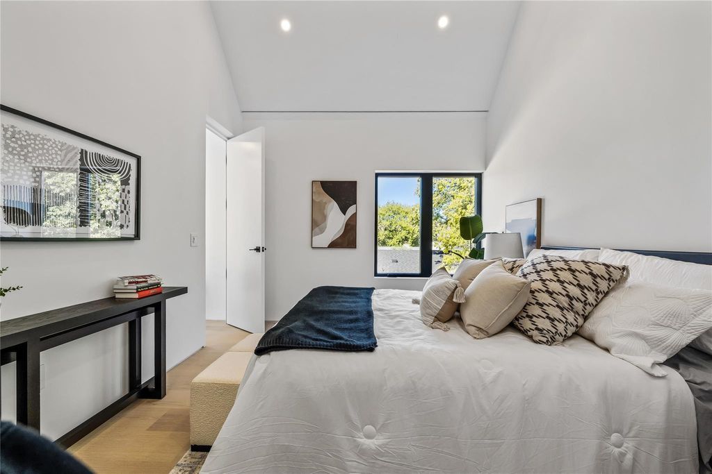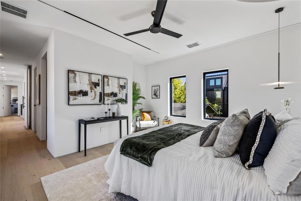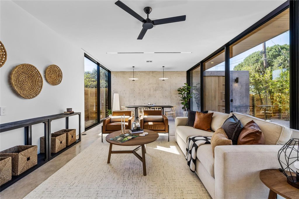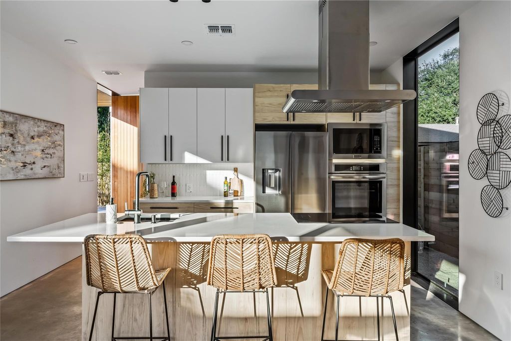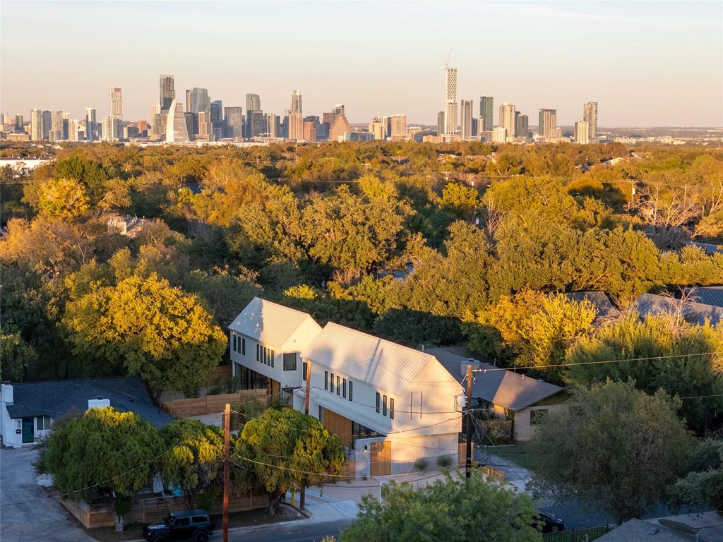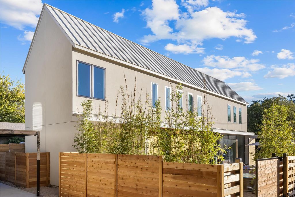 Experience the best of South Austin living in this modern architectural gem, perfectly situated in the heart of the iconic 78704 zip code. Designed with intention and artistry, this brand-new two-story home fuses the quiet harmony of Japanese minimalism with the relaxed warmth of Balinese design"”creating a space that feels both calming and effortlessly livable. From the moment you step inside, natural light pours through an entire wall of glass and expansive floor-to-ceiling windows, illuminating polished concrete floors and an open-concept layout that feels both airy and grounded. The main level invites connection"”whether gathered around the sleek quartz-wrapped kitchen island, enjoying a meal in the framed dining nook, or relaxing in the spacious living area that flows seamlessly toward the private, fully fenced yard. Every detail has been considered: custom cabinetry, tile backsplash, concealed curtain tracks, USB-integrated bedside outlets, recessed lighting, frameless doors, and Wi-Fi-enabled switches"”all designed for an uncluttered, functional aesthetic. A dedicated workspace offers flexibility for creative pursuits or remote work, with discreetly integrated outlets and thoughtful proportions. Upstairs, solid oak floors lead to three serene bedrooms and spa-inspired baths featuring terracotta-toned tile, floating vanities, and hidden toilet tanks for a crisp, modern finish. The primary suite evokes resort-style tranquility"”an ideal retreat balancing texture, tone, and simplicity. Outside, the oversized yard offers room to lounge, entertain, with an easy to maintain cowboy pool for refreshing dips. Minimalist yet soulful, this home is more than new construction"”it's a modern sanctuary crafted for how people want to live in 78704 today.