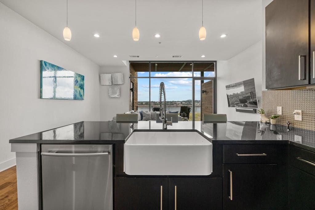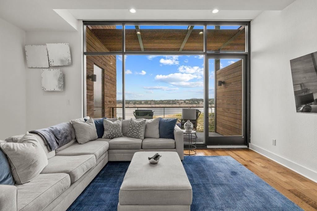 Welcome to your dream lakefront escape at the prestigious Waterstone on Lake Travis, where modern luxury meets the serenity of nature! This impeccable condo w/2-car garage offers breathtaking, one-of-a-kind views of Lake Travis & the stunning community pool, creating a captivating backdrop. Step inside to discover an open-concept plan, featuring expansive floor-to-ceiling windows, high ceilings, crisp white walls, & gorgeous hardwood flooring that flows effortlessly throughout the main living spaces. The chef's kitchen features sleek black granite countertops, a farmhouse sink, breakfast bar for casual dining, ample storage, & premier stainless appliances. Retreat to your lavish second-floor primary suite, where you will be greeted by sunrise views of the lake each morning, & enjoy the generous walk-in closet, automatic shades for privacy, and spa-like bathroom. The thoughtfully designed floor plan also includes two inviting guest bedrooms"”one on each floor"”ensuring comfort for family & friends. Relax on your private covered balcony, where you can sip your morning coffee or enjoy a glass of wine & mesmerizing twilight sky over the lake. Mark your calendar for the phenomenal annual 4th of July fireworks show"”a dazzling display right from your own backyard! As a resident of Waterstone, you'll indulge in world-class lakefront amenities including an infinity pool, oversized spa, waterfront patio & commercial-grade outdoor kitchen, scenic walking trails, fishing & lounging areas, fire pits, and easy access to day docks and jet ski slips. The unbeatable location offers a plethora of nearby attractions, including Point Venture Golf Club, Captain Pete's Boat House, Lago Vista Brewery, Lucky Rabbit Restaurant, & the breathtaking Balcones Canyonland National Forest. Embrace this rare opportunity to experience full-time lake living or a perfect lock-and-leave vacation home on the water. This condo ALWAYS has a deep-water lake view. New HVAC installed April 2025.