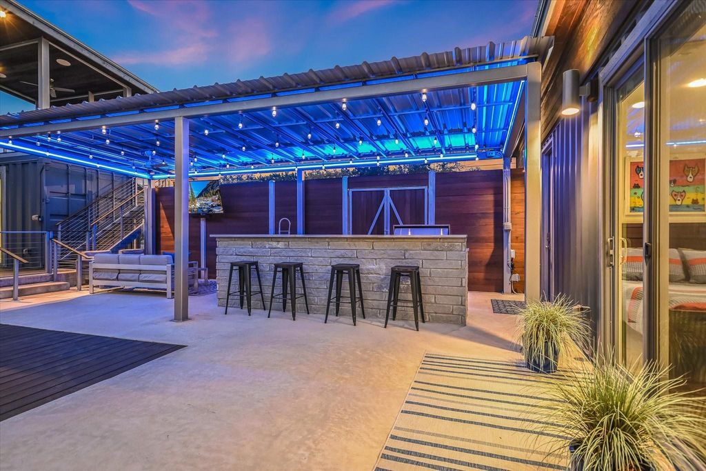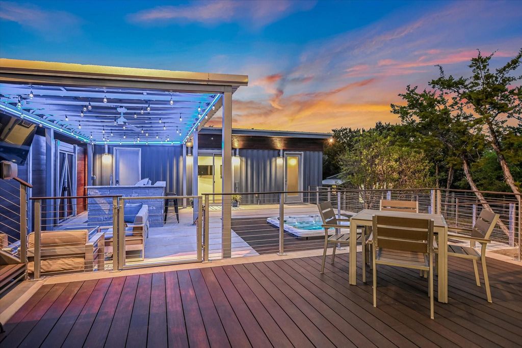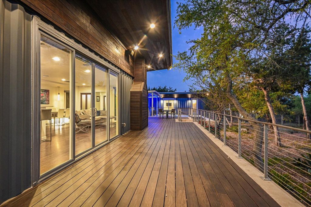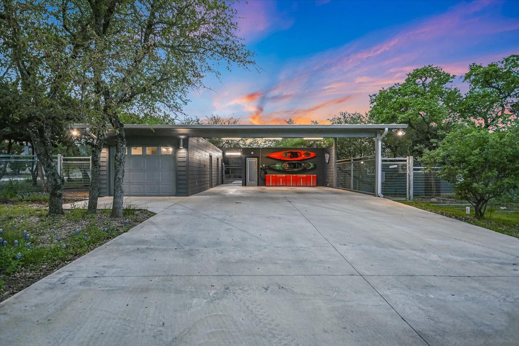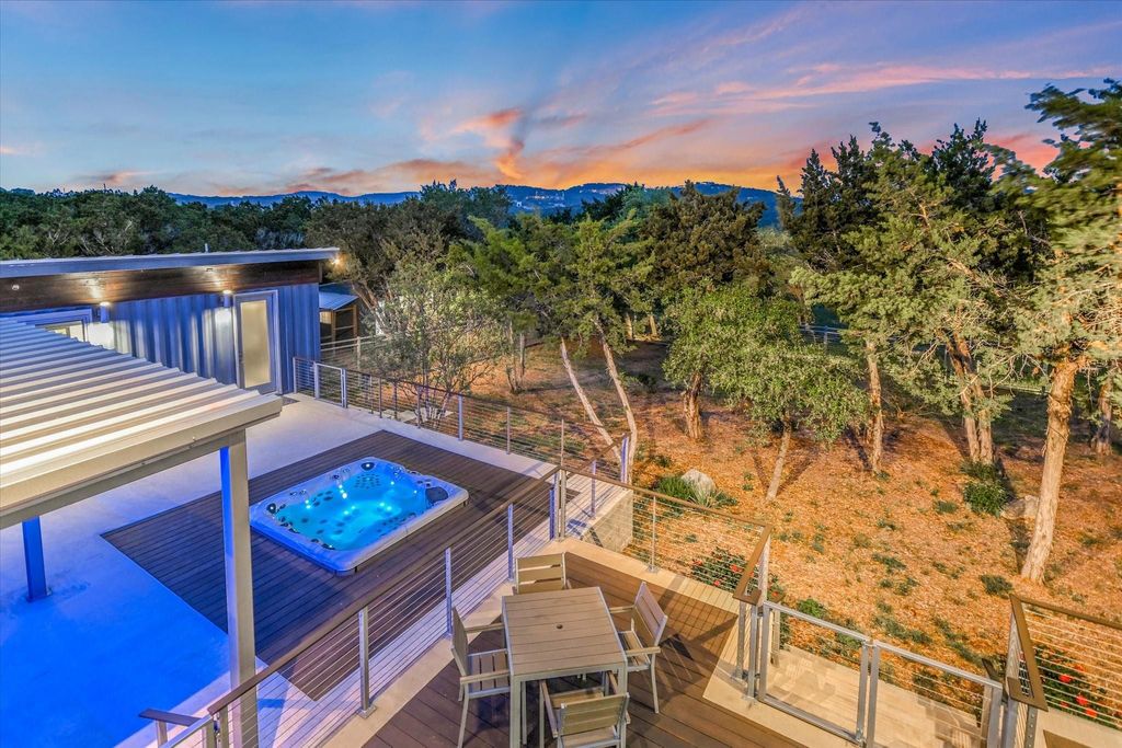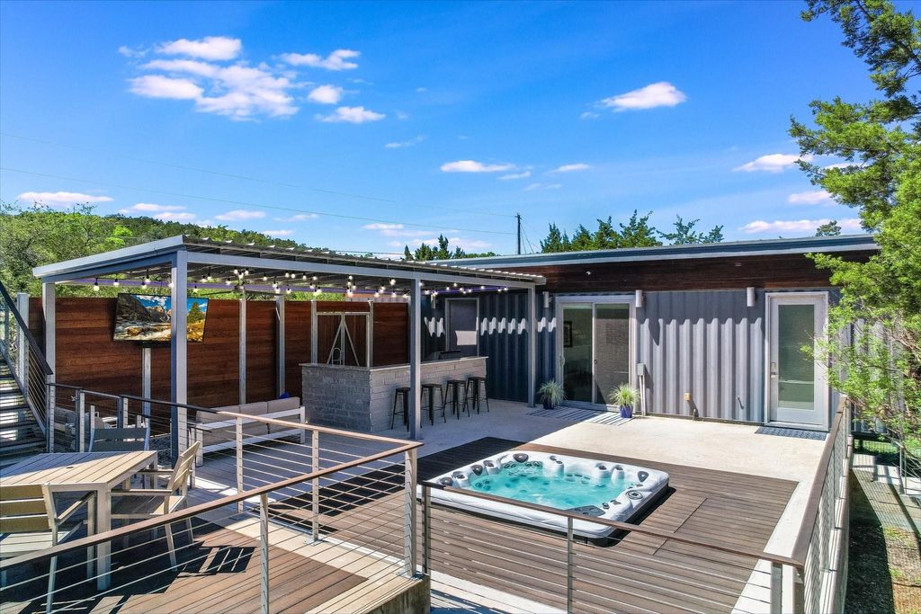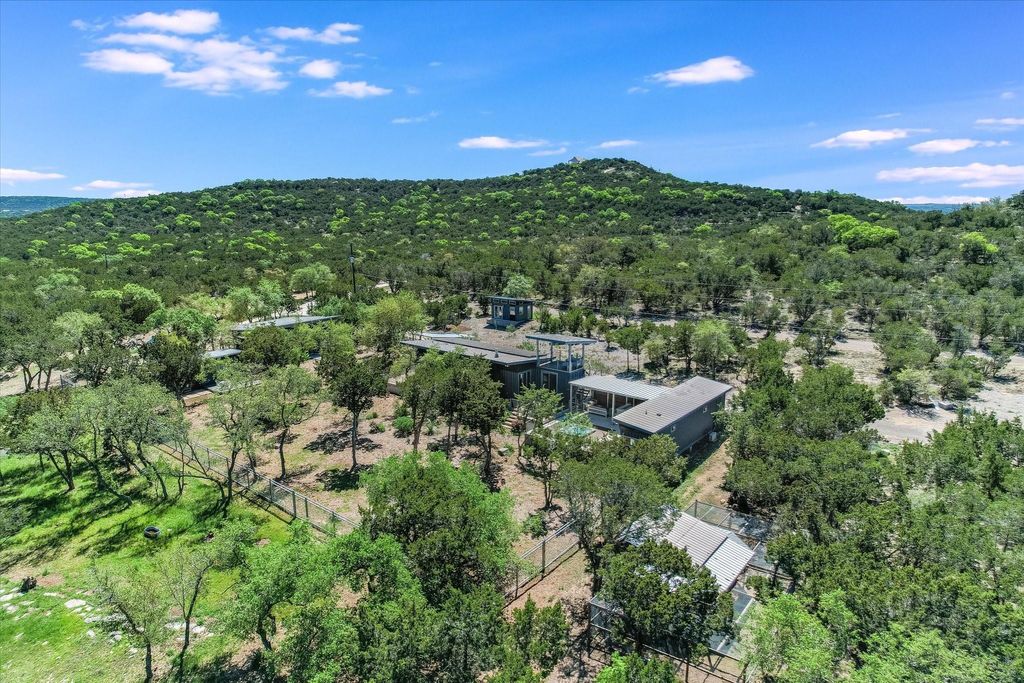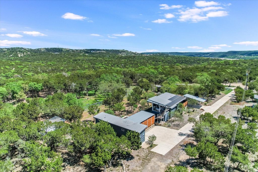 See Virtual Tour for more photos/videos/floorplans** Welcome to Whiskey Bend Ranch, a modern retreat in the hills of Travis County, offering a captivating blend of sustainable living and contemporary design on a sprawling 16-acre estate. Under an hour's drive from downtown Austin, this remarkable property has very few restrictions and presents a rare opportunity to experience the essence of Hill Country living without sacrificing modern comforts. Upon arrival, a sense of tranquility envelops you as you meander along the paved and gated driveway and greeted by a stunning tableau of modern architecture seamlessly integrated with the landscape. The main attraction, the Container House, boasts striking architecture and modern amenities, providing a truly unique living experience that cannot be replicated. Step inside to discover thoughtfully curated spaces, bathed in natural light and designed to bring the outdoors in, offering sunny, bright living areas. Venture outside to the expansive deck area, the focal point of the property, offering panoramic Hill Country views and serving as the ultimate entertaining space. Complete with a spa, outdoor kitchen/living area, and overlook, this outdoor oasis seamlessly ties together the main and guest houses, creating a communal gathering space. Each structure on the ranch serves a specific purpose yet offers flexibility to adapt to the needs of the new owner. From the separate buildings with bedrooms, kitchenettes and baths, to the standalone office, to the carport complete with Electric Vehicle Charging Station, storage room, gym and ATV Garage, every detail has been carefully considered to enhance the living experience. Utilities abound, with electricity, solar backup, water, septic, large underground propane, Boosted WiFi, and a propane backup generator ensuring self-sufficiency and reliability. Embrace the beauty of nature and the comforts of modern living and discover unparalleled Hill Country living.