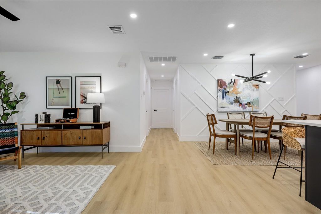 Live your best Austin life at 813 Cardiff Dr! Enjoy Michelin-rated Leroy and Lewis Barbecue, grab the tastiest pastries in town at Quack's, or get to any of the great restaurants and shops on South Lamar or South Congress in minutes from this beautiful mid-century ranch-style home. It has been thoughtfully updated from top to bottom, with careful attention to both style and function. Step inside to a bright, open-concept living room, dining area, and kitchen, an inviting space designed for relaxing, gathering, and entertaining. The updated kitchen features striking two-toned cabinetry, an island with seating for three, sleek quartz countertops, a stylish tile backsplash, an oversized apron sink, and new stainless steel appliances. Durable white oak luxury vinyl plank flooring runs throughout the home, offering both modern appeal and practicality, perfect for households with kids or pets. The primary suite enjoys its own private wing, creating an ideal retreat. It includes a spacious walk-in closet with double hanging rods and built-in shelves, and an elegant ensuite bathroom with a walk-in shower, matte black fixtures, and a generous shower nook for all your essentials. Adjacent to the primary suite are the laundry room and a mudroom, plus access to the backyard. Enjoy your morning coffee on the back deck beneath the heritage oak tree, or let pets play freely in the fully fenced yard. On the opposite side of the home, you'll find three additional bedrooms, each with walk-in closets and sleek barn-style doors, as well as a secondary bathroom featuring another walk-in shower and coordinated matte black fixtures. Recent AISD redistricting places this property within St. Elmo Elementary, Mendez Middle School and Travis High. Contact the listing agent or your preferred agent to schedule a showing today!