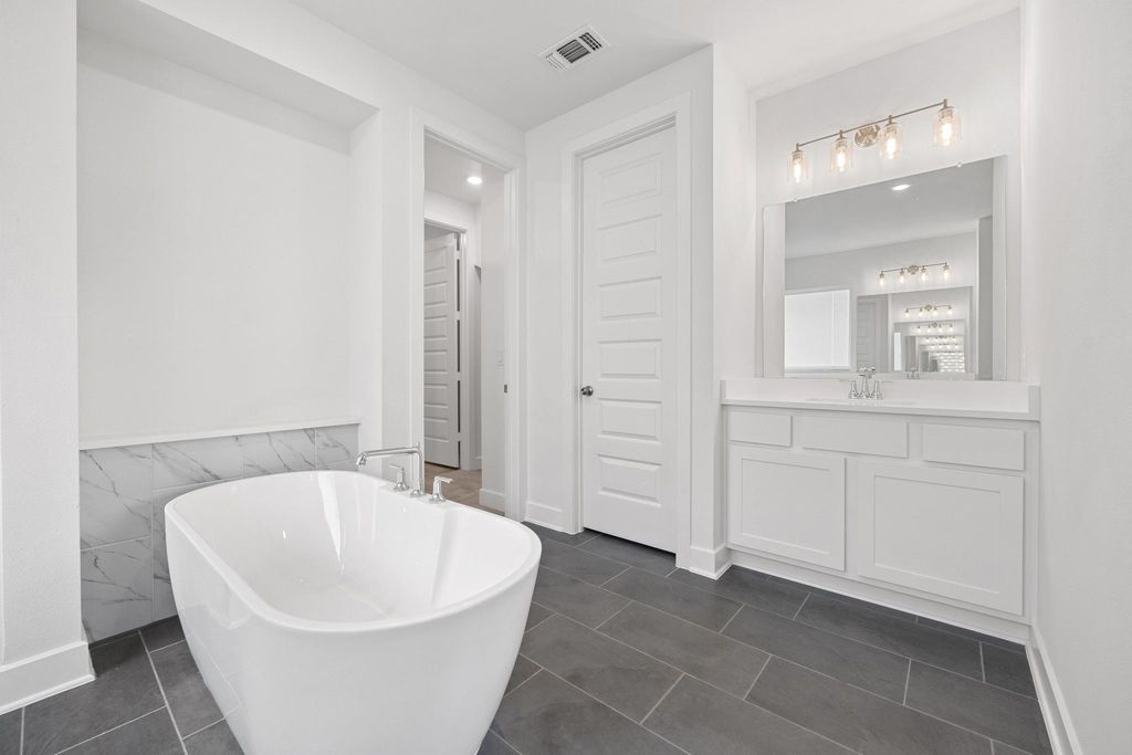 MOVE IN READY!! Westin Homes NEW Construction (Carter IX, Elevation M) 5 Bedrooms, 4.5 baths. Private primary suite with spacious double walk-in closets downstairs. Breathtaking Rotunda Entry with Study and Formal Dining room. Breakfast area attached to Chef's Dream Kitchen, open to the Family room. Guest Suite on First Floor with 3 Bedrooms Upstairs to Accompany Both Game & Media Rooms. Covered Patio attached, 2 car Garage, Front & Back Sod, and backs to green space! Come Visit Your New Home Today!