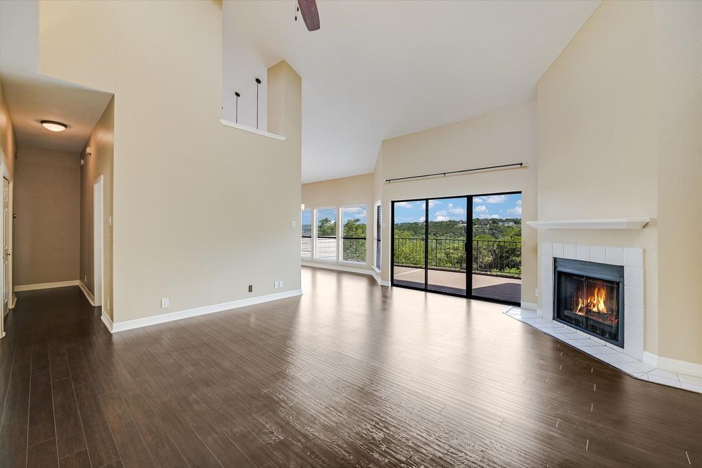 Location, lifestyle, and luxury converge in this beautifully updated 3-bedroom, 2-bath single-level condo in the heart of sought-after Lost Creek"”home to award-winning Eanes ISD schools. Perched above the Barton Creek Greenbelt, enjoy sweeping, unobstructed views from the expansive private deck, perfect for morning coffee or evening entertaining. The spacious open floorplan is filled with natural light, accentuated by soaring 20-foot ceilings in the living room and kitchen. A cozy fireplace anchors the living space, creating a warm and inviting atmosphere. Thoughtful updates include luxury vinyl wood flooring, modern lighting and ceiling fans, sleek granite countertops, custom cabinetry, and stainless steel appliances. The oversized primary suite offers a peaceful retreat with ample space for a home office or study nook. Additional features include an attached two-car garage, an abundance of windows, and a short, convenient commute to downtown Austin and Barton Creek Mall. This is effortless greenbelt living at its finest"”don't miss the opportunity to make it yours.