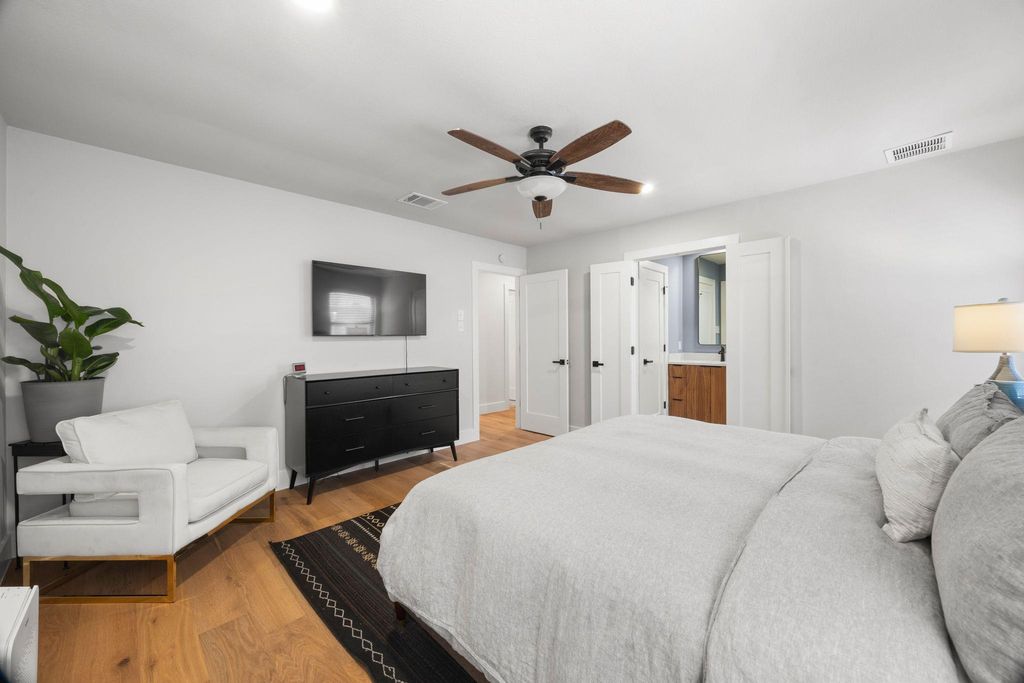 Beautifully updated South Austin home in sought after 78745! This move in ready gem features a mahogany front door, a warm wood flooring throughout, an oversized laundry/storage room and a bright large open layout. There is a new HVAC system and kitchen with all new appliances including a built in microwave and high quality finishes. Step outside under a spacious backyard pergola perfect for entertaining. This beauty is nestled in a quiet mature tree lined street just minutes from the vibrant St. Elmo district, south congress and downtown area.