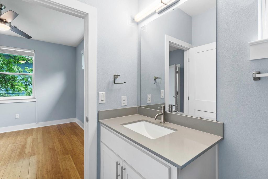 Modern freestanding condo with its own private driveway and fenced backyard"”giving you the feel of a single-family home with the convenience of condo living. Inside, you'll find a bright, open layout with tile and hardwood floors, high ceilings, and plenty of natural light. The kitchen is beautifully finished with sleek grey Silestone countertops and stainless-steel appliances. Both bedrooms feature hard wood floors and walk-in closets, and the bath offers a large walk-in shower. Additional features include Tankless water heater for efficiency, NEST thermostat for smart comfort, pre-wired for security, Google Fiber available in the neighborhood. Location highlights: just 5 minutes to Starbucks and major highways (71/290/183), 5 miles from Downtown Austin and 4 miles to Bergstrom international airport.