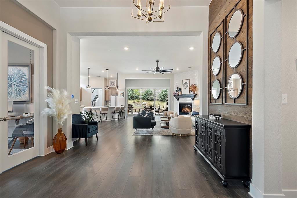 Experience luxurious Hill Country living with this exquisite mostly single-story home in the prestigious Sweetwater Ranch community in West Austin. This fully customized, former model home offers 4 beds and 3.5 baths with an Austin address and access to the acclaimed Lake Travis ISD schools. Built in 2020, this beautifully maintained property boasts striking stone and stucco masonry, complemented by craftsman-style design. The home features a two-car garage and an additional single-car garage, perfect for a workshop, gym or of course a third vehicle. Inside, the expansive open layout includes a formal dining room, large living area, secondary bonus room upstairs, beautiful home office with modern glass doors, and a gourmet island in the kitchen that is open to everything. High ceilings, LED recessed lighting, and a cozy fireplace enhance the lux atmosphere with hand picked lighting fixtures and wood work. The chef-inspired kitchen is equipped with stainless steel appliances, granite countertops, and an oversized island with seating up to 6. Additional living space is extended on the back side of the home with the spacious cover patio, deck, and outdoor fire-pit. No neighbors behind also provides ample privacy! The primary suite presents a spa-like ensuite bath, walk-in closet, and walk in shower with dual vanities and soaking tub. Residents of Sweetwater Ranch enjoy resort-style amenities, including pools, a clubhouse, tennis courts, a fitness center, and more. With easy access to 71, you're minutes from hill country destinations, shopping, and just 21 miles from Downtown Austin!