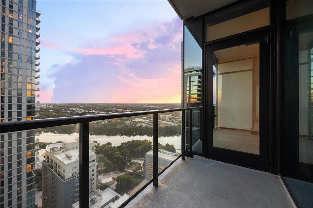 Elevate your lifestyle in this stunning, south facing 2-bedroom condo at The Modern Austin Residences. Flooded with natural light from floor-to-ceiling windows, this thoughtfully designed home captures breathtaking views of Lady Bird Lake and the city skyline. The kitchen is a chef's dream, featuring sleek quartz countertops, top-of-the-line Wolf gas stove, and contemporary, streamlined Italian cabinetry. The primary bathroom offers an upgraded designer finish palette with gorgeous floor to ceiling tile, a dual vanity, natural stone countertops, ambient cove lighting, and a spacious walk-in shower. Wide-plank white oak wood floors flow throughout, complementing the high-end finishes including automated solar shades, and custom built-out walk-in closet. Residents enjoy access to over 19,000 square feet of curated amenities, including a 25-meter pool and spa, state-of-the-art fitness center, yoga studio, multiple resident lounges, a business center, dog park with wash station, and an exclusive sky lounge with catering kitchen. With 24/7 concierge service and a prime location in the Rainey Street Historic District, this home offers unparalleled walkability to Austin's finest dining, nightlife, and the scenic Lady Bird Lake trail.